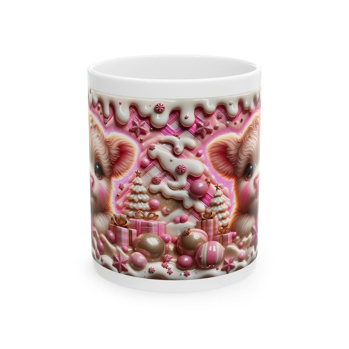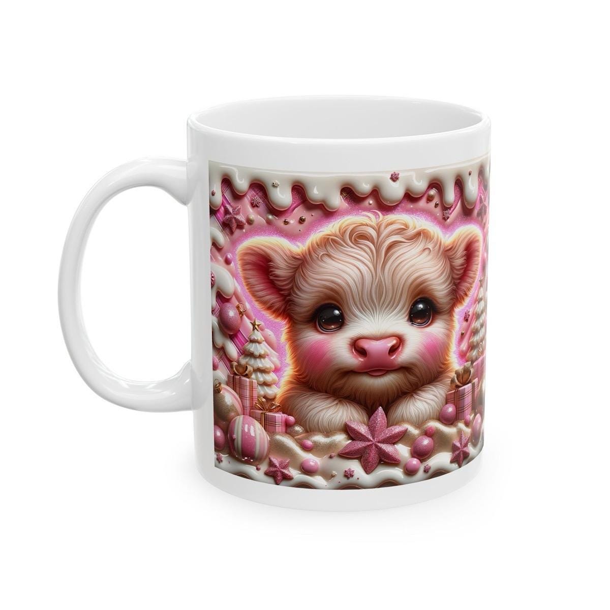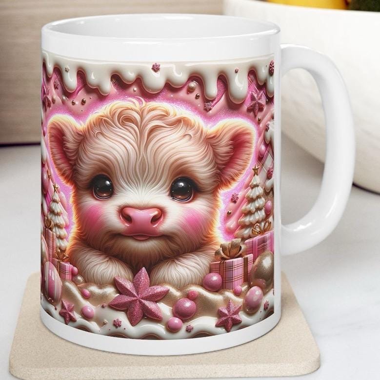 Overall, this 3D Pink Highland Cow Christmas Mug is a must-have for anyone who loves cute and quirky designs. The festive design, candy accents, and unique 3D design make it a great addition to your holiday decor and a thoughtful and festive gift for your loved ones.