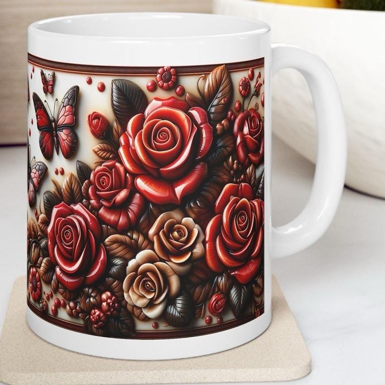3d roses mug - perfect for your morning drinks - tumblers, drinkware cup bottles ceramic reusable washable reuse coffee xmas mugs tea