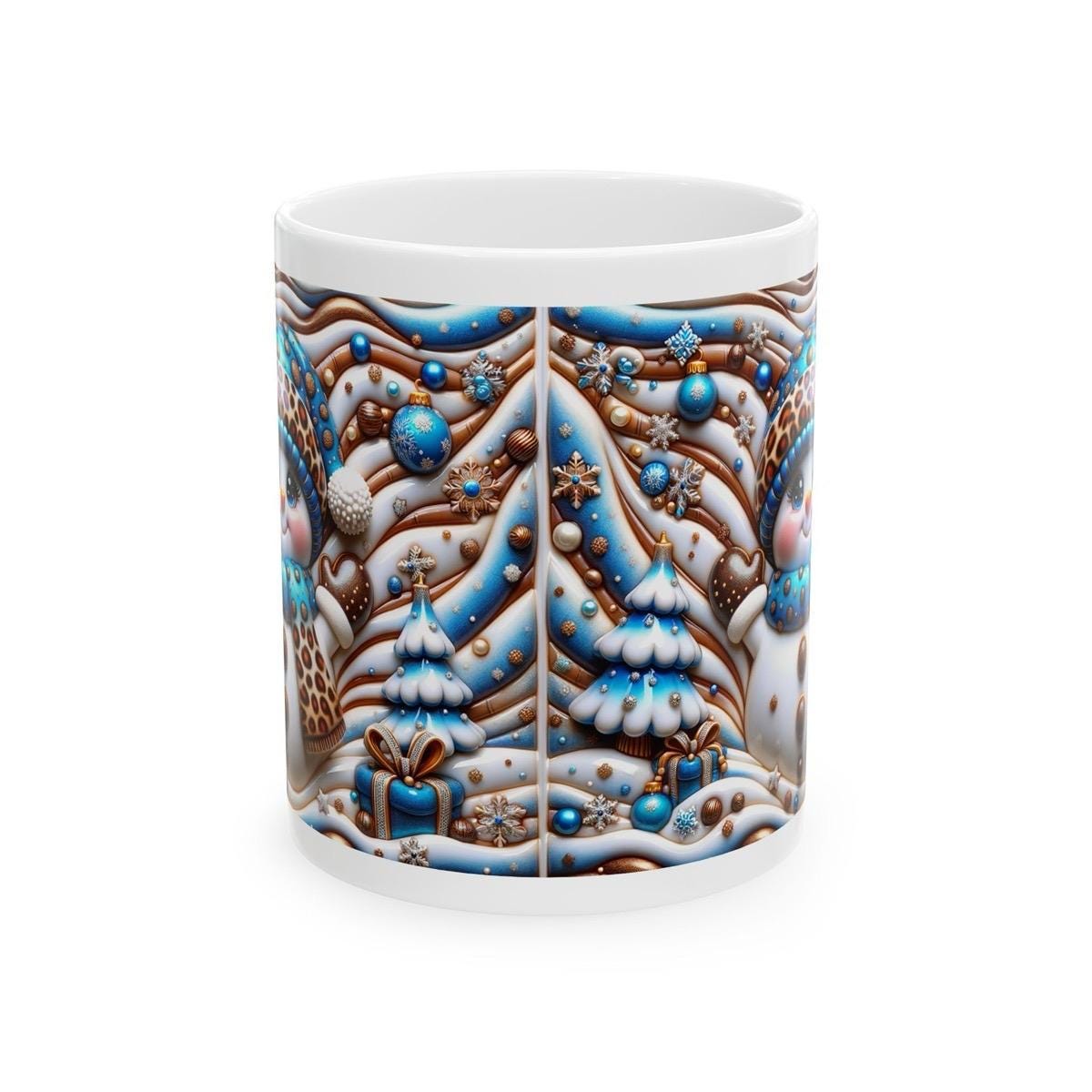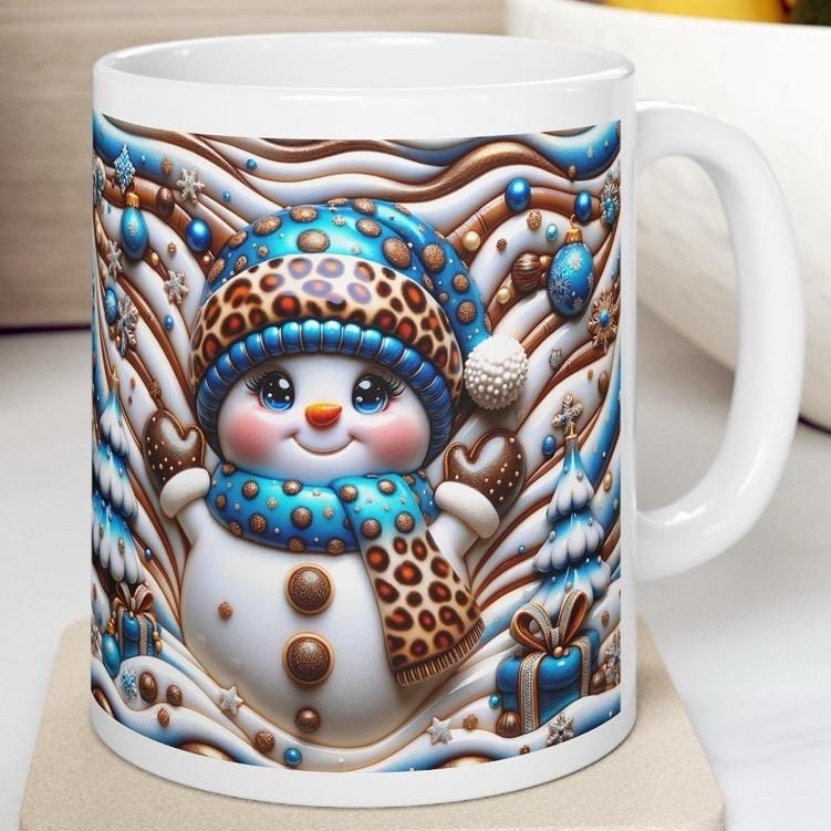 3d snowman christmas mug – cosy winter design with blue and gold accents, perfect festive gift! drinkware reusable tumbler washable reuse