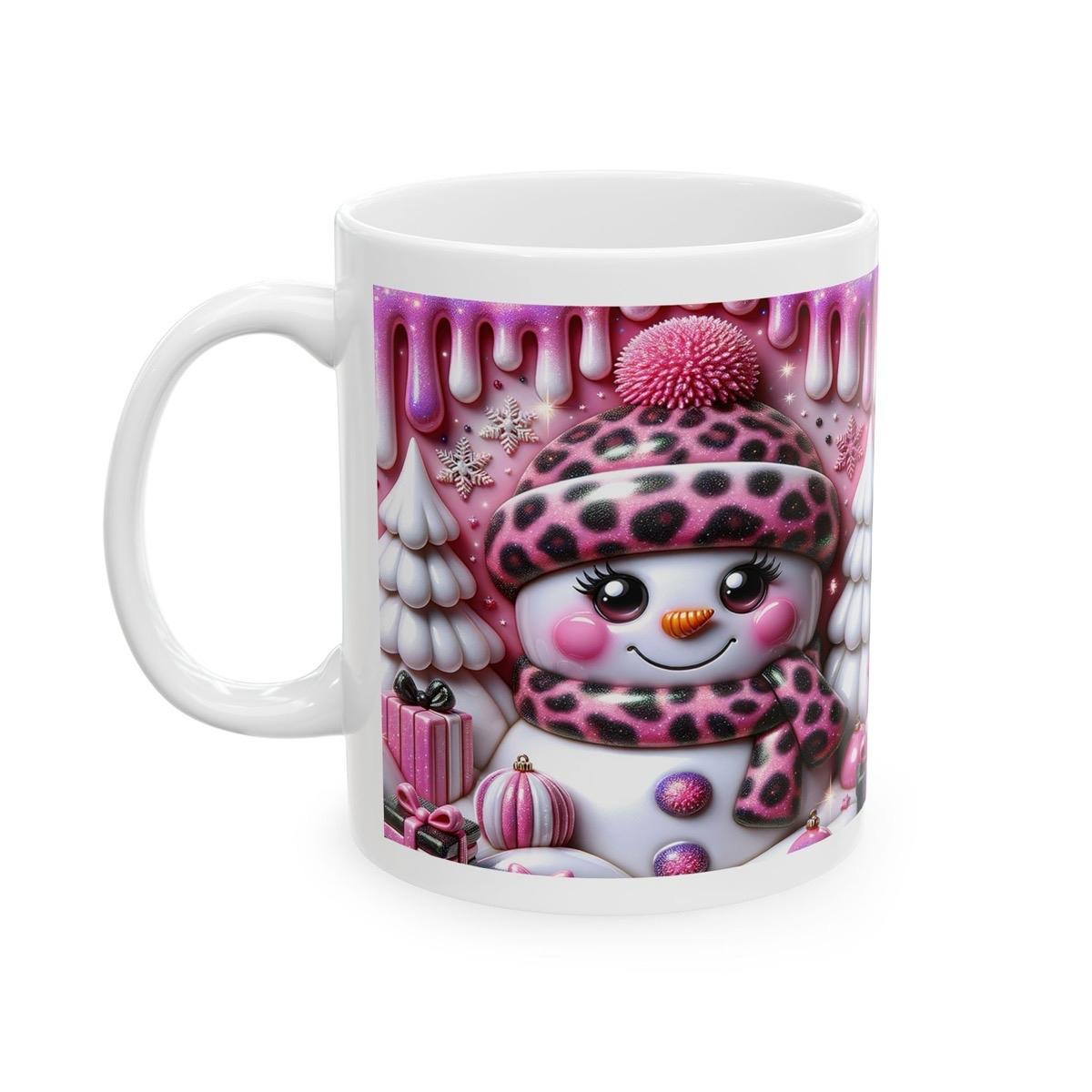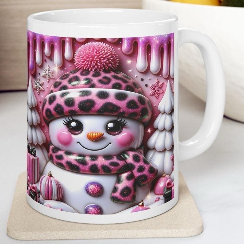 Overall, this 3D Snowman Mug is a must-have for anyone who loves the holiday season. Its whimsical design and pink accents make it a fun and festive addition to your holiday decor.