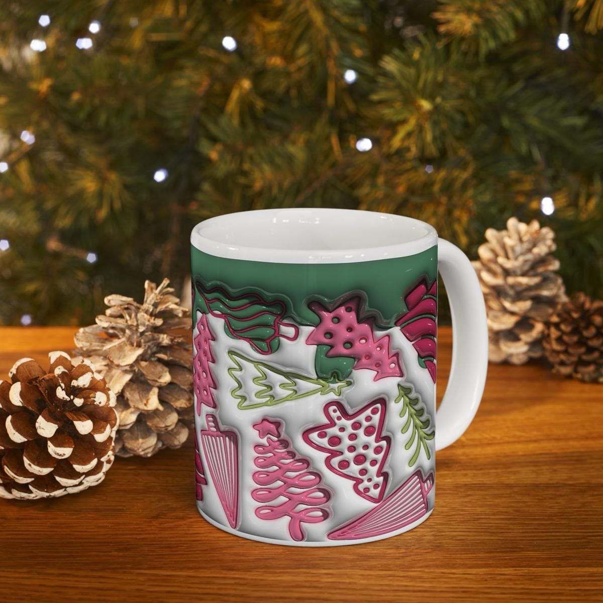 3d style christmas trees mug - perfect for your holiday drinks - drinkware reusable washable ceramic reuse tumbler cup coffee fun mugs xmas