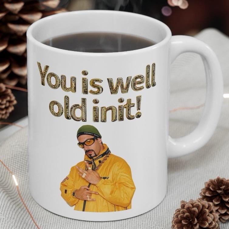 Ali g style funny mug - you is well old init - perfect mother's day, birthday, and xmas gift for secret santa - reusable, drinkware washable