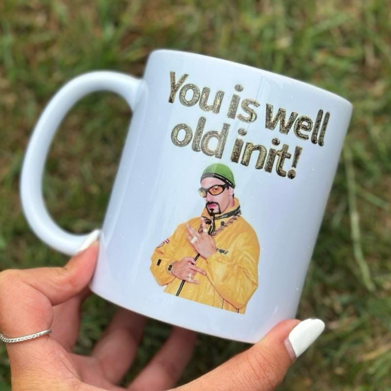 The Ali G Style Funny Mug is a perfect gift for Mother's Day, birthdays, and Secret Santa. This mug is designed to make people laugh and bring joy to their day. The design on the mug reads "You is Well Old Init" and is sure to bring a smile to anyone's face.