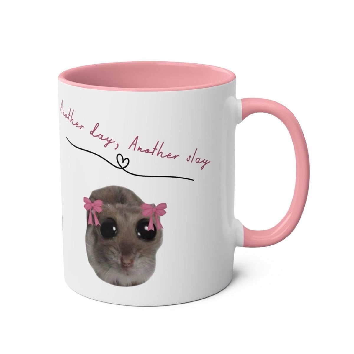 In conclusion, the "Another Day, Another Slay Funny Cute Hamster Literally Just a Girl pink Mug" is a great addition to your morning routine. It is cute, funny, and environmentally friendly, making it a great choice for anyone who wants to start their day with a smile. So why not get your hands on this mug today and enjoy your morning coffee or tea in style?