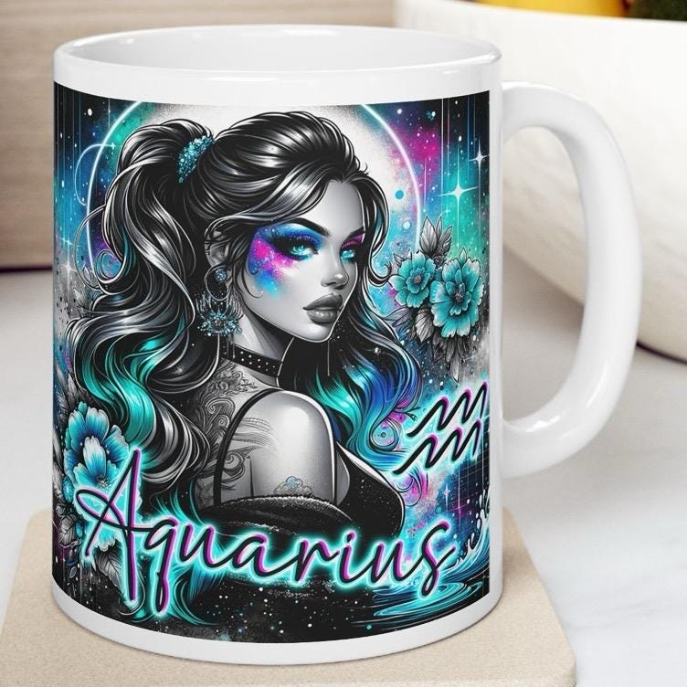 The Aquarius Star Sign Mug is a perfect gift for the Zodiac enthusiast. This mug is made of ceramic material and is reusable, washable, and can be reused. The Aquarius star sign design on the mug is a unique and personalized touch that adds to the overall aesthetic of the mug.