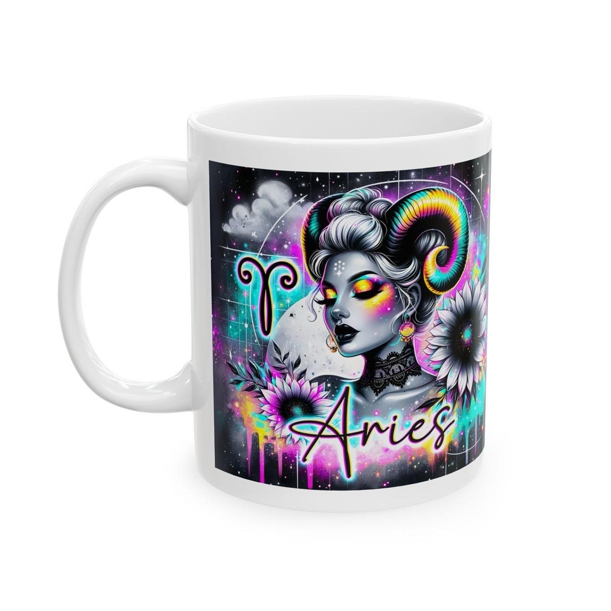 Aries star sign astrology mug - perfect gift for coffee lovers - drinkware washable reusable cup tumbler reuse ceramic funny cute novelty mu