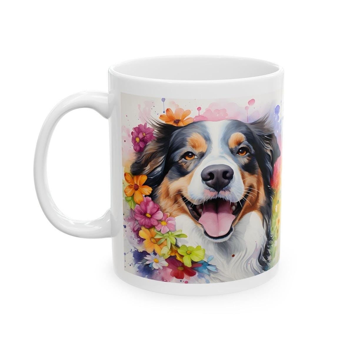This Australian Shepherd Floral Mug is a perfect gift for dog lovers. The mug features a beautiful floral design that adds a touch of elegance to the overall look. The design is inspired by the Australian Shepherd breed, making it a unique and special gift for dog enthusiasts.