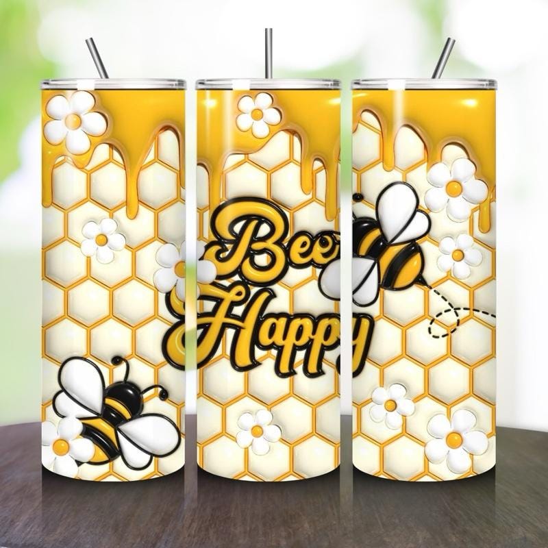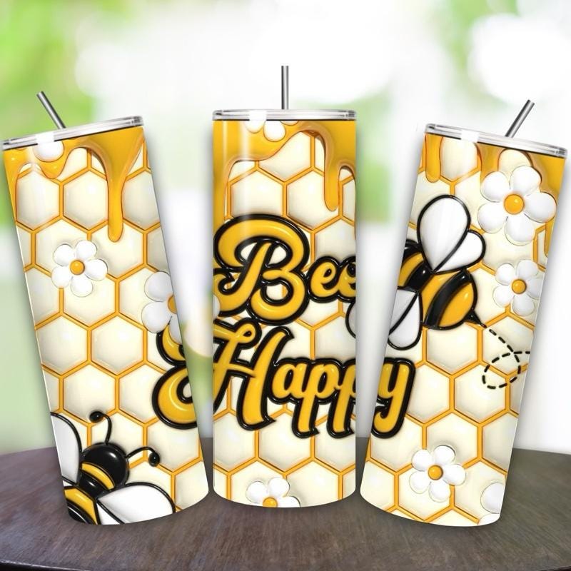 Be happy bee 20oz bees girly tumbler style - perfect for any occasion drinkware flasks mug bottles water bottles bottled stylish beverage po