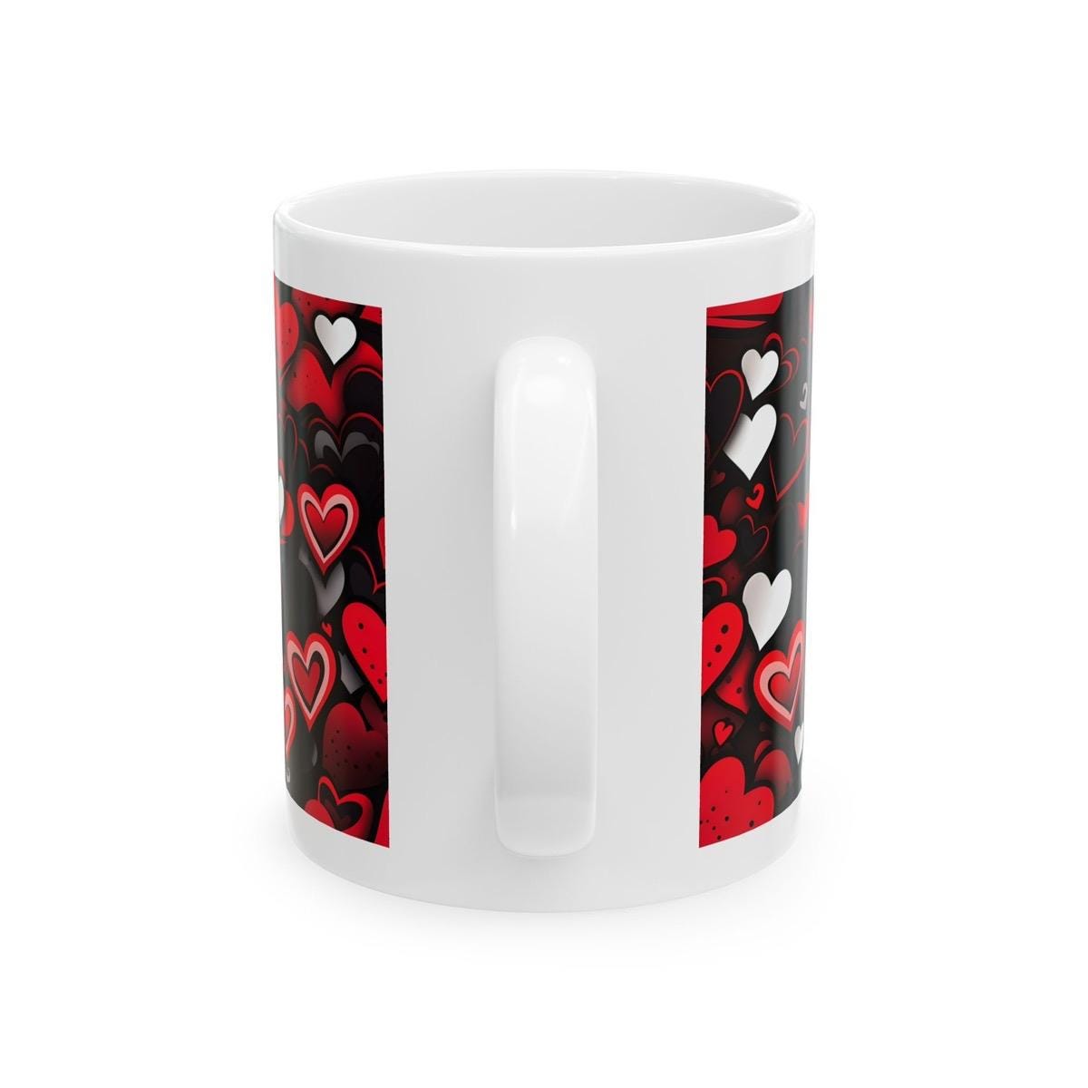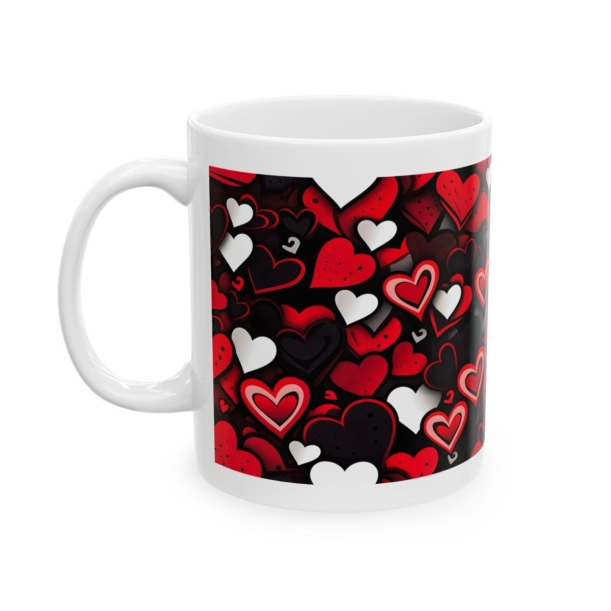 This mug is the perfect gift for Valentine's Day or Christmas for a girlfriend or boyfriend. The mug features a design of black, white, and red hearts, which adds a touch of romance and can be a great way to show your love and affection for your significant other.