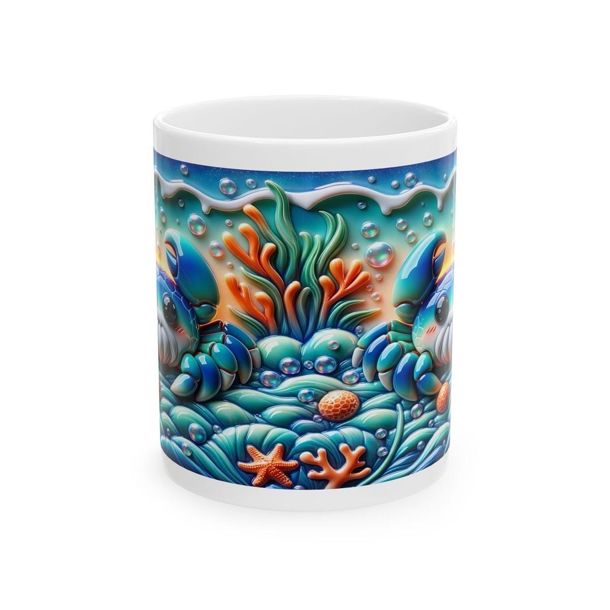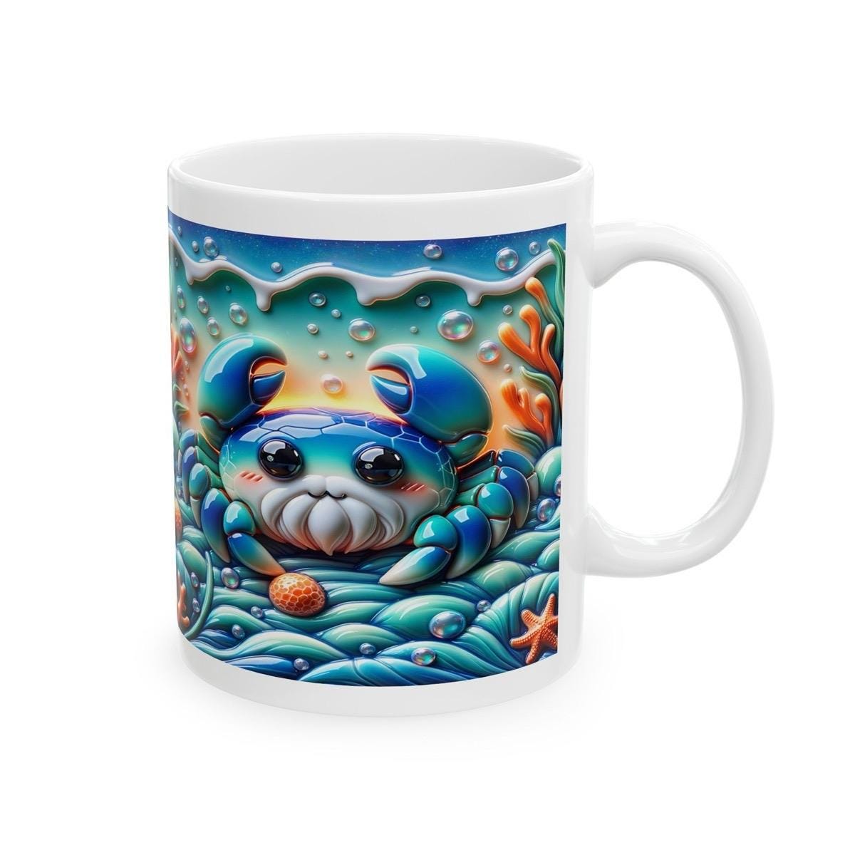 This 3D mug is a perfect addition to your morning routine. The design features a blue crab in the ocean, adding a unique and interesting touch to your coffee or tea. The mug is made of durable ceramic material that is easy to clean, ensuring that it will last for a long time.