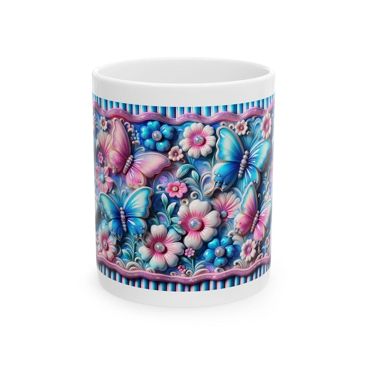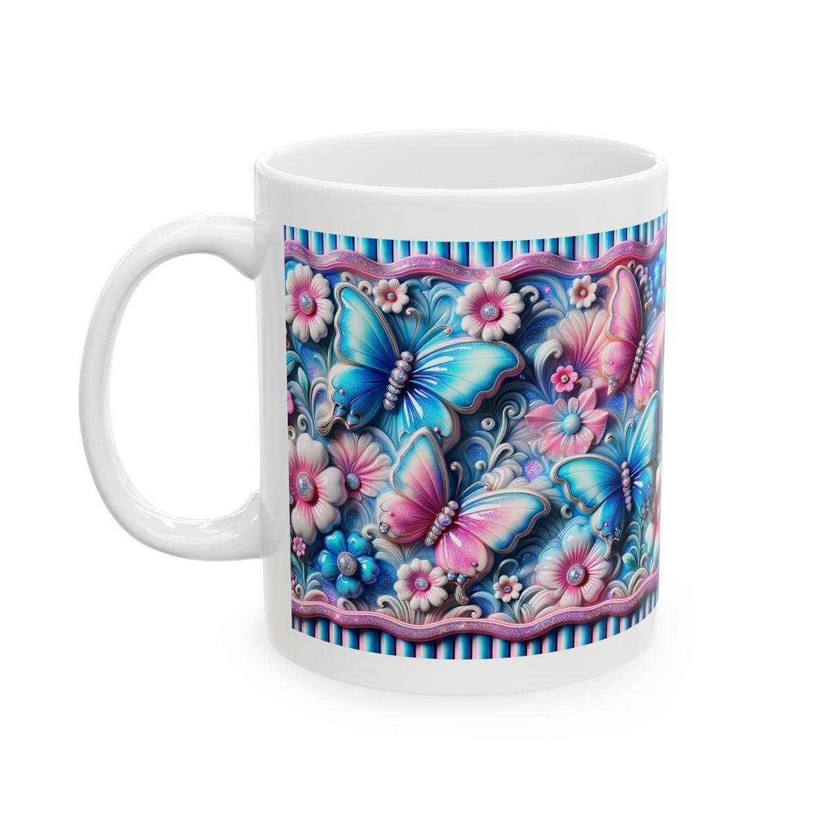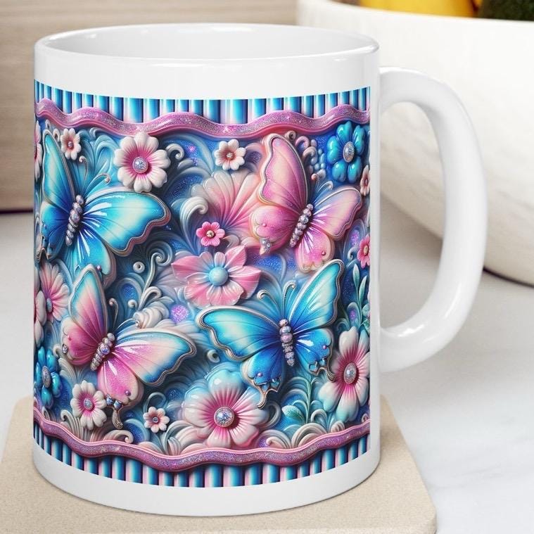 Blue pink butterfly 3d mug - perfect for your morning drinks - drinkware, tumblers cup bottles reusable coffee washable reuse ceramic xmas m