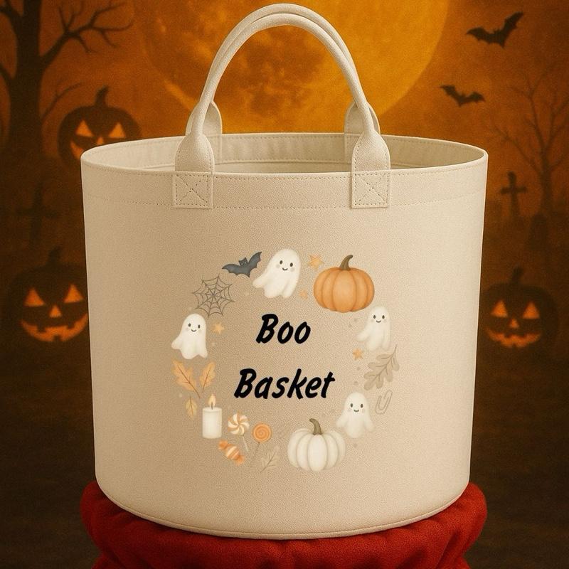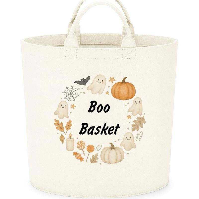 Boo Basket Felt Trug Storage with Halloween Ghosts and Pumpkins Design for Storage Needs fun gifts gift Halloween cute funny friends mum girlfriend boyfriend dad present Decorative Organiser