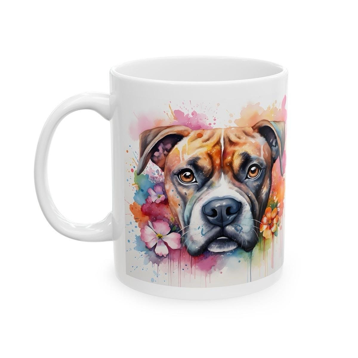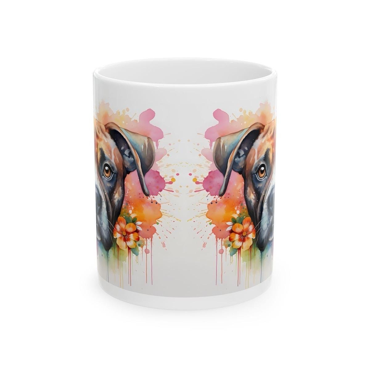 Boxer dog art floral mug - perfect gift for dog lovers - xmas, christmas, and birthday puppy - perfect for coffee and tea - drinkware cup wa