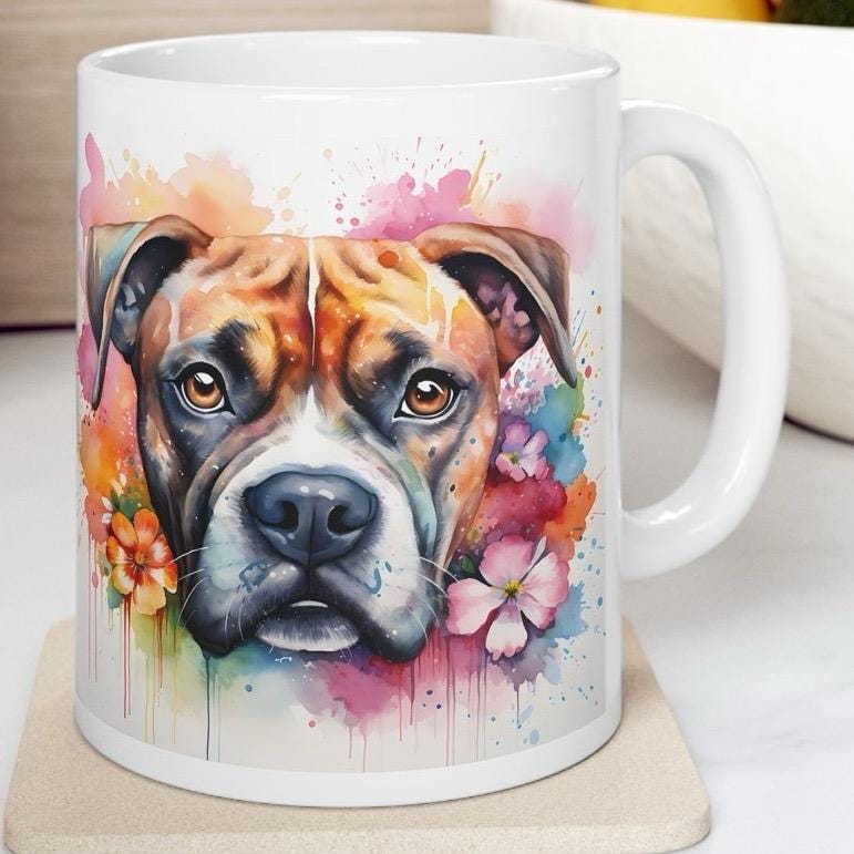 The Boxer Dog Art Floral Mug is a great way to show your love for dogs. The design is perfect for dog lovers who want to add a touch of style to their daily routine. The mug is also a great way to show your appreciation for your furry friend.