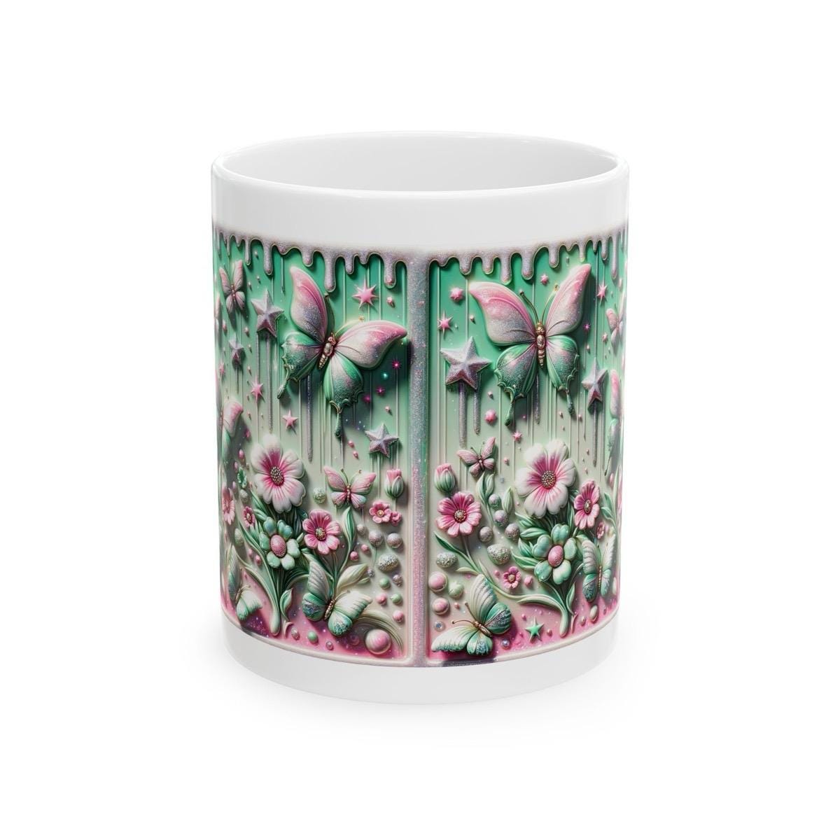 Introducing the Butterfly Flower Star 3D Mug, a unique and visually appealing mug that is sure to add a touch of elegance to your morning routine. The design of this mug features a beautiful butterfly, a delicate flower, and a sparkling star, all of which are intricately crafted to create a 3D effect that is sure to impress.