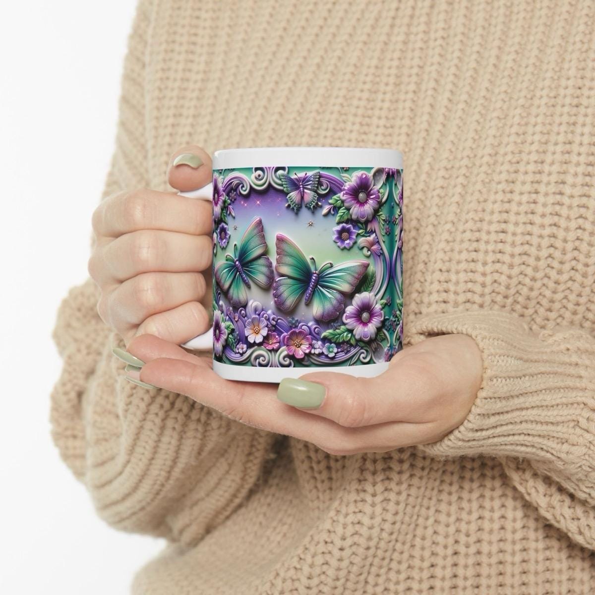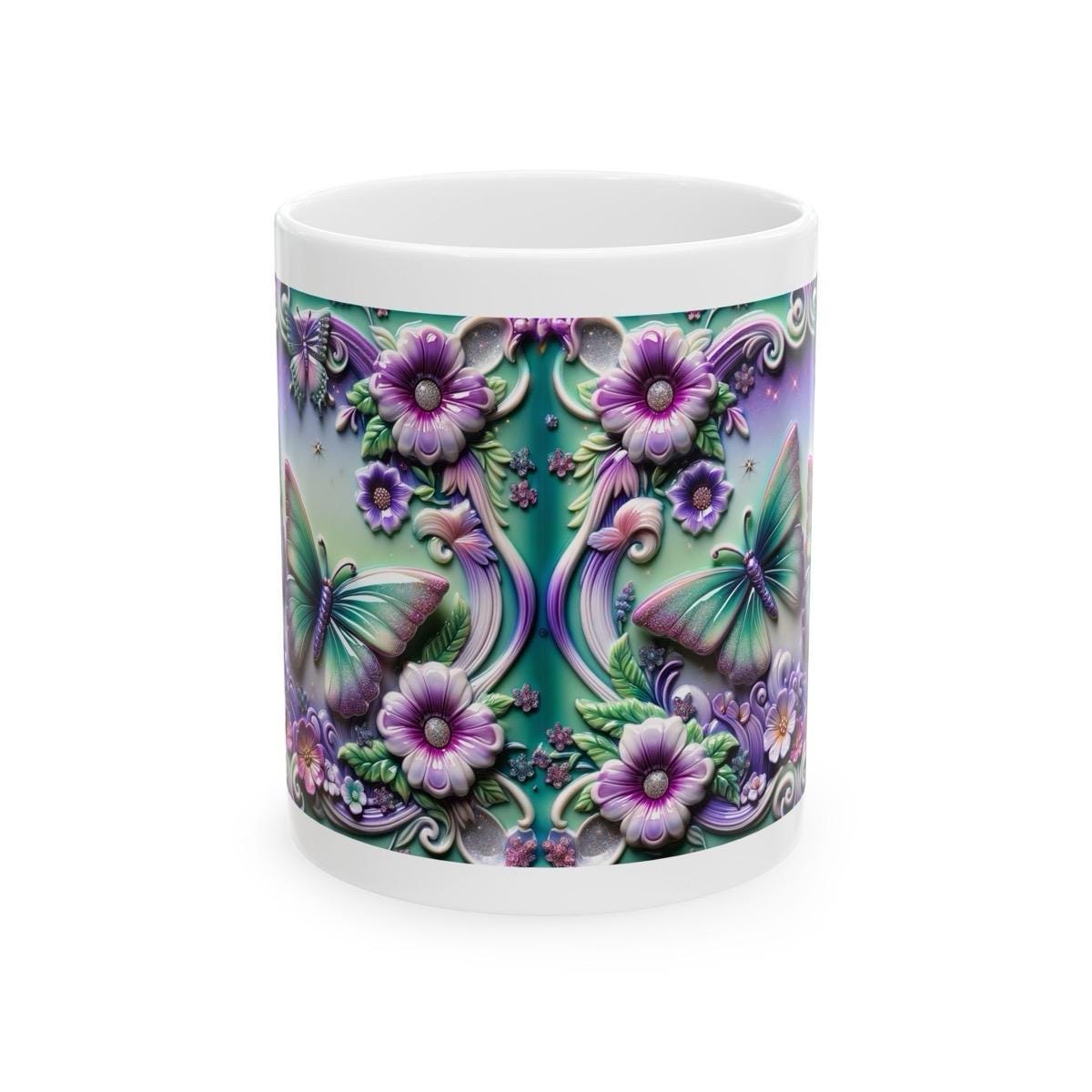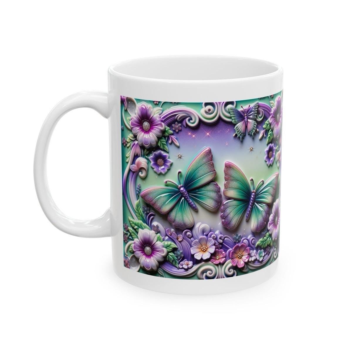 Butterfly flowers 3d mug - perfect for your morning drinks - drinkware coffee sturdy tumbler washable reusable reuse cup ceramic tea xmas mu