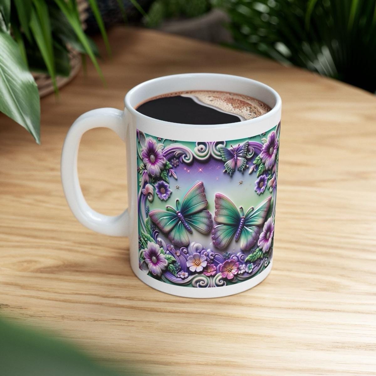 Whether you're enjoying your morning coffee or tea, or looking for a unique gift for a loved one, the Butterfly Flower 3D Mug is sure to impress. Its unique design and practicality make it a great addition to any kitchen or office.
