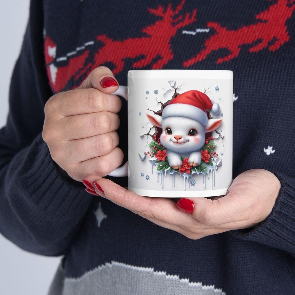 This Christmas season, add a touch of festive cheer to your morning routine with our 3D mug featuring a cute baby goat design. The mug is perfect for those who love to celebrate the holiday season in style and want to enjoy their favorite hot beverages in a unique and eye-catching way.