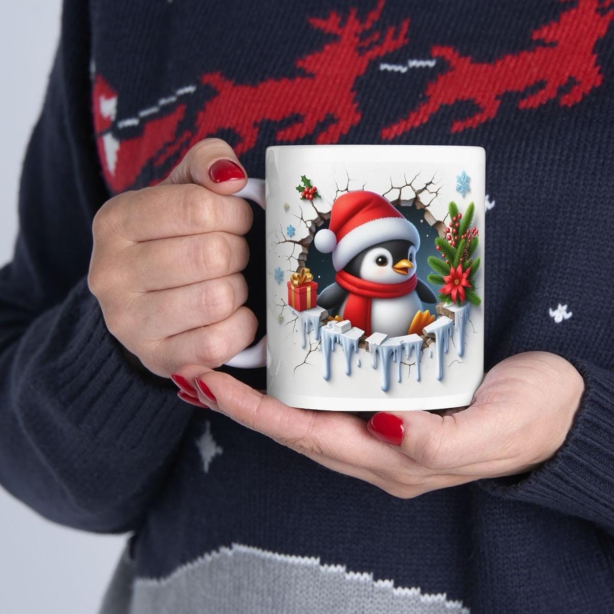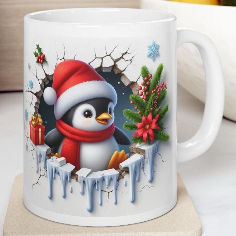 Overall, the Christmas Baby Penguin 3D Mug is a fun and festive way to start your day. With its cute design and 3D effect, it is sure to be a hit with anyone who loves animals and the holiday season. So why not add this mug to your collection and enjoy your favorite hot beverage in style?