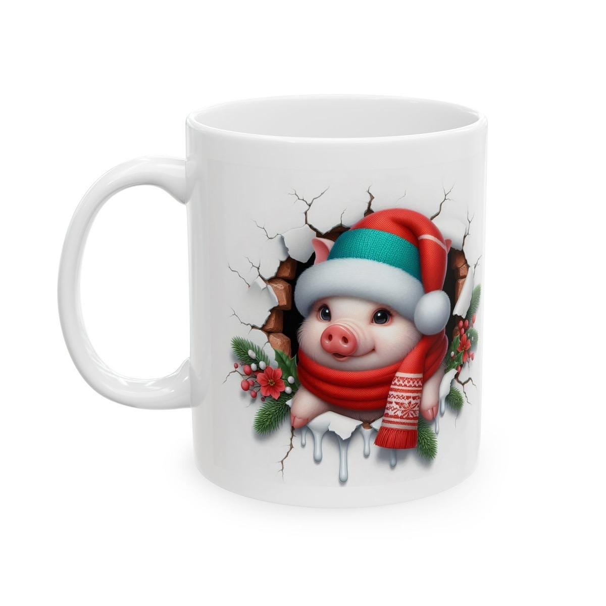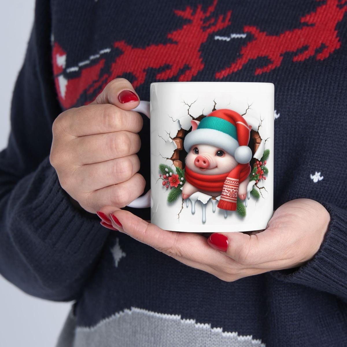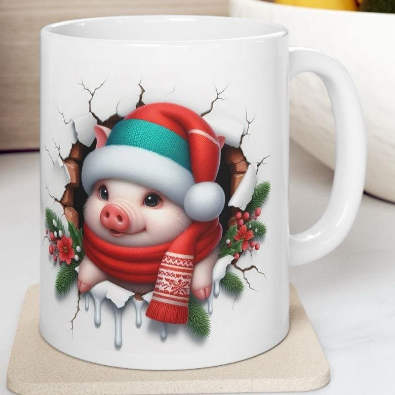 Overall, the Christmas Baby Piglet 3D Mug is a fun and festive way to celebrate the holiday season. Its cute design and 3D effect make it a unique and memorable gift that is sure to be appreciated by anyone who loves animals and the holiday season.