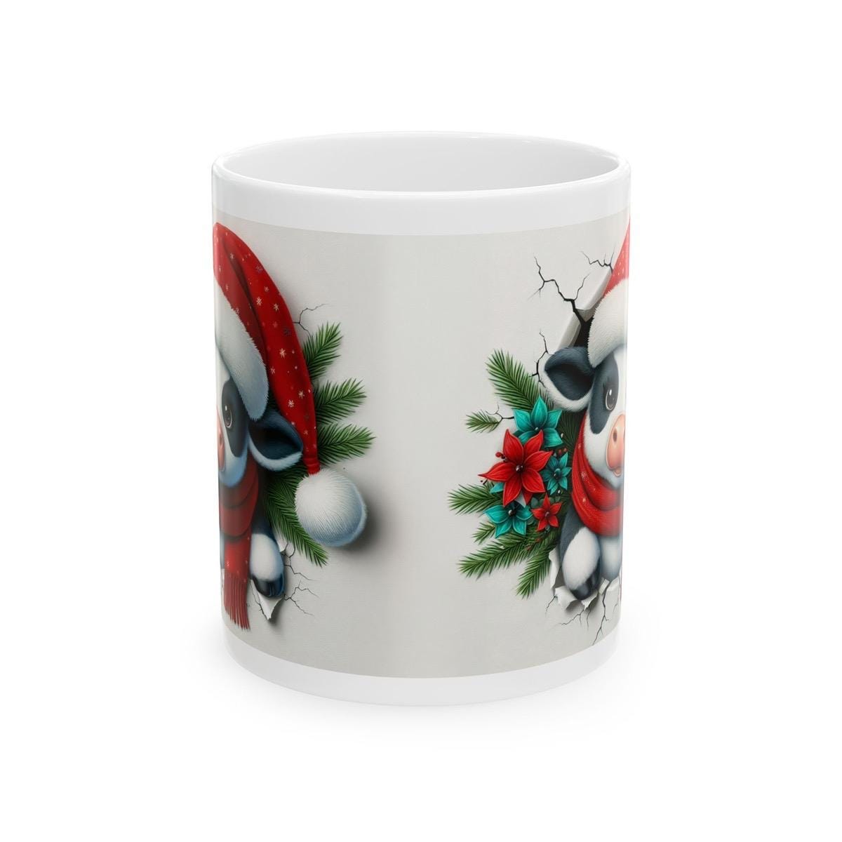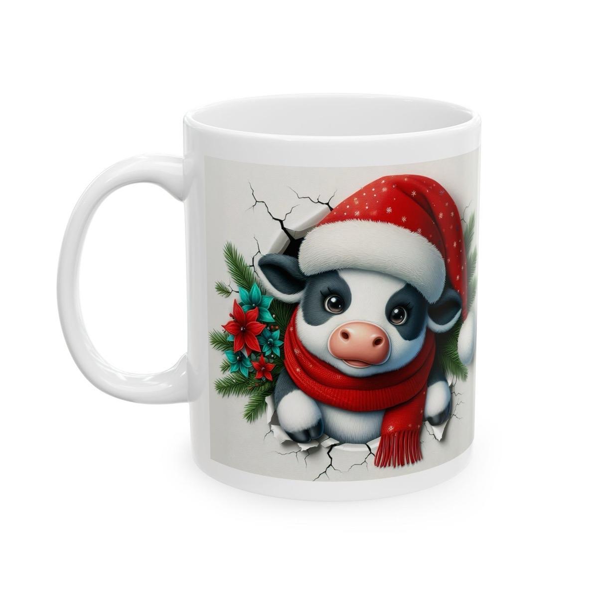 Introducing the Christmas Cow 3D Mug, a unique and festive addition to your holiday season. This mug features a 3D design of a cow, adding depth and dimension to the design. The cow is wearing a Santa hat, adding a playful touch to the mug.
