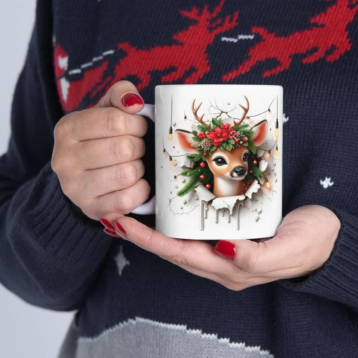 The 3D design of the mug adds a unique and eye-catching element to the mug, making it stand out from other mugs. The deer design is perfect for those who love the holiday season and want to add a festive touch to their morning coffee or tea.