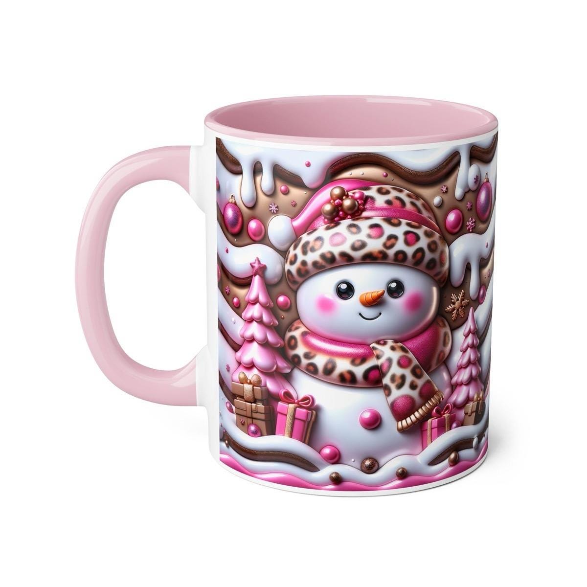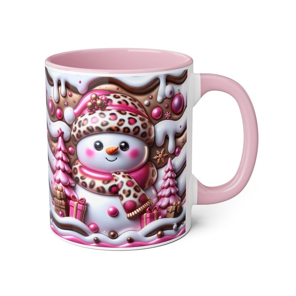 Christmas gift 3d snowman mug with pink interior and handle - perfect for drinks - tumblers, drinkware cup reusable washable reuse coffee ce