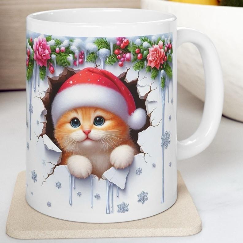 Overall, the Christmas Kitten 3D Mug is a fun and festive way to celebrate the holiday season. With its cute design and 3D effect, it's sure to be a hit with anyone who loves cats or enjoys a good holiday cheer.