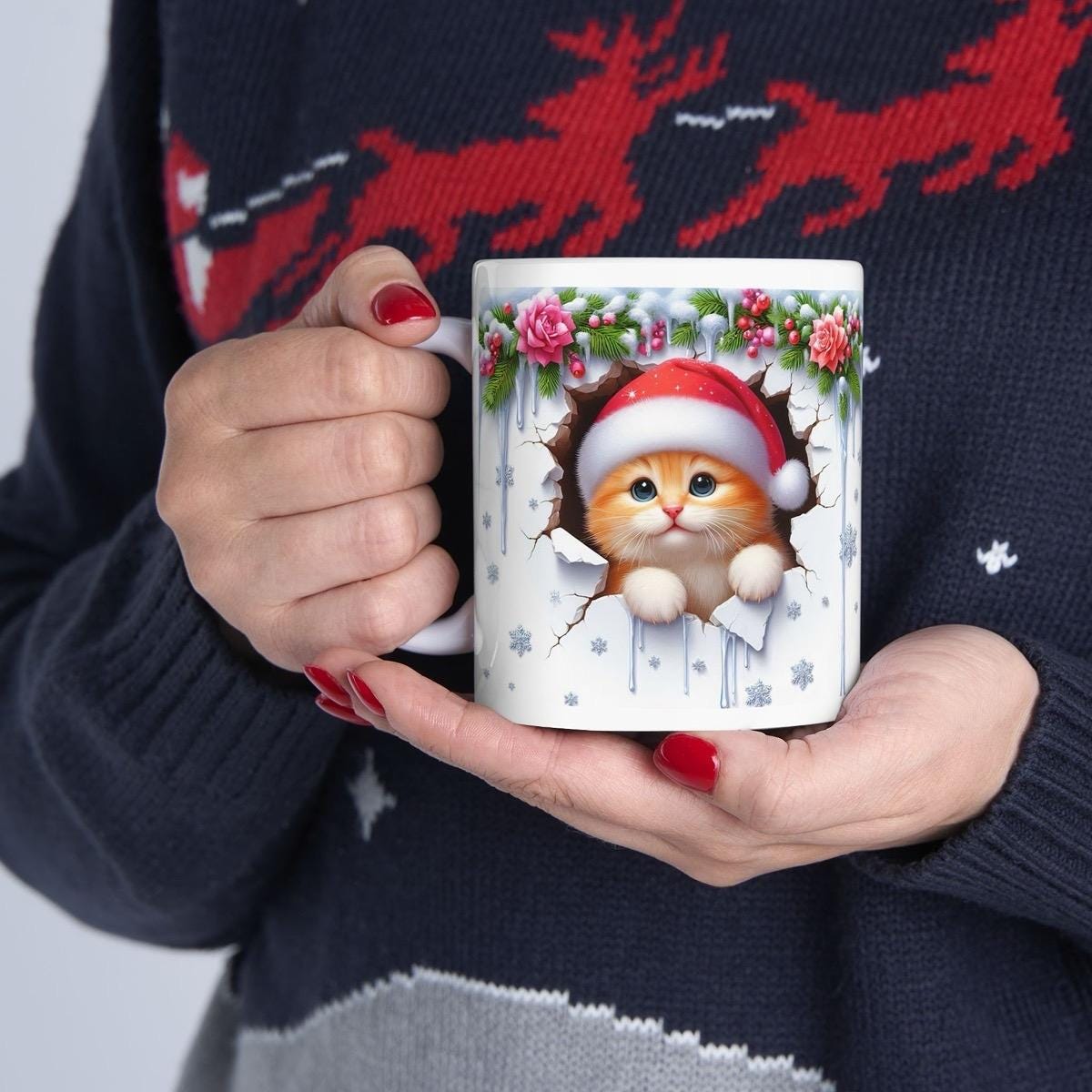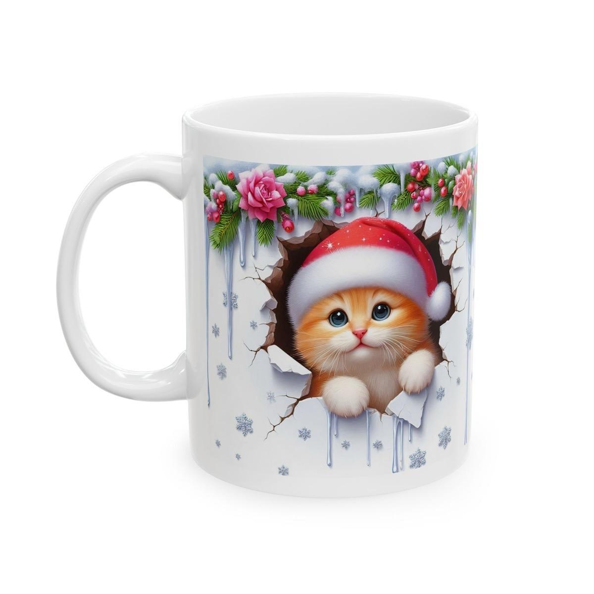 Christmas kitten 3d mug - perfect for hot beverages - tumblers, drinkware cup bottles kitty ceramic washable reusable reuse coffee xmas mugs