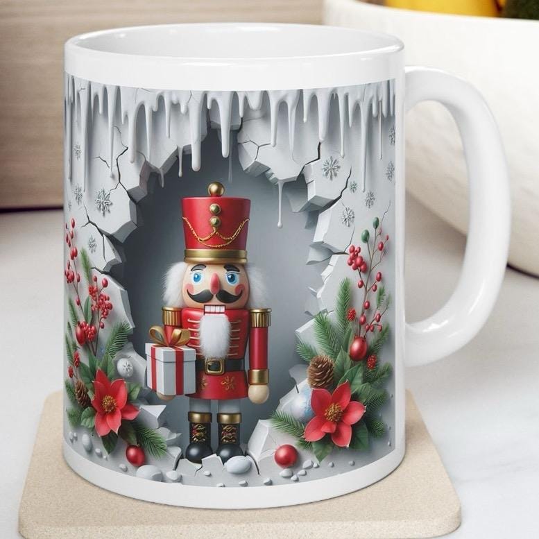 Introducing the Christmas Nutcracker 3D Mug, a perfect addition to your holiday season. This mug features a 3D design of a nutcracker, adding depth and dimension to the design. The nutcracker design is a classic symbol of Christmas, making it a great choice for holiday-themed mugs.