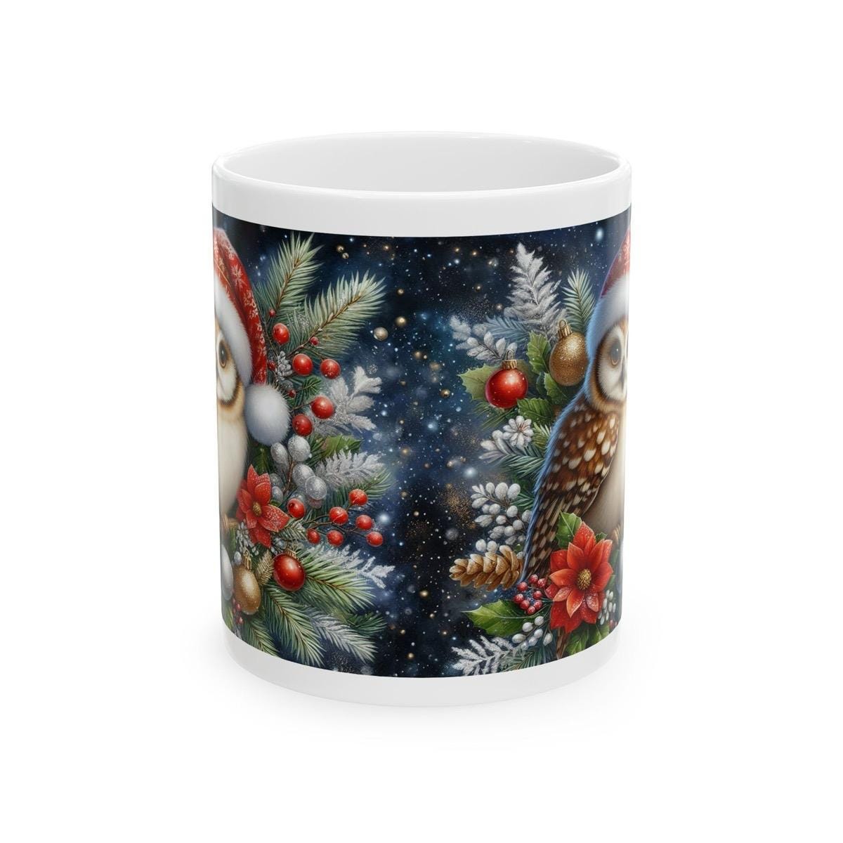 The Christmas owl design on the mug is sure to be a hit with anyone who loves owls or the holiday season. The design is festive and fun, making it a great gift for friends and family. The mug is also a great way to add a touch of holiday cheer to your home or office.