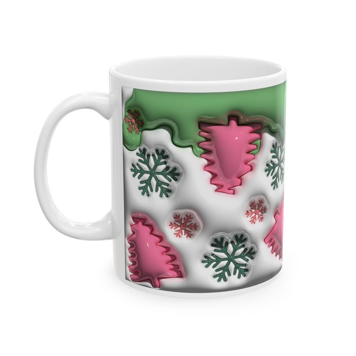 Christmas tree snowflake mug - 3d style - perfect for festive parties - drinkware, cup reusable tumblers washable reuse ceramic coffee obses