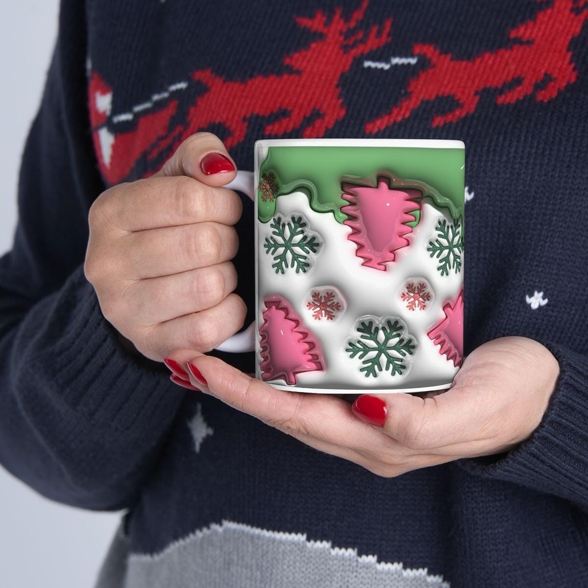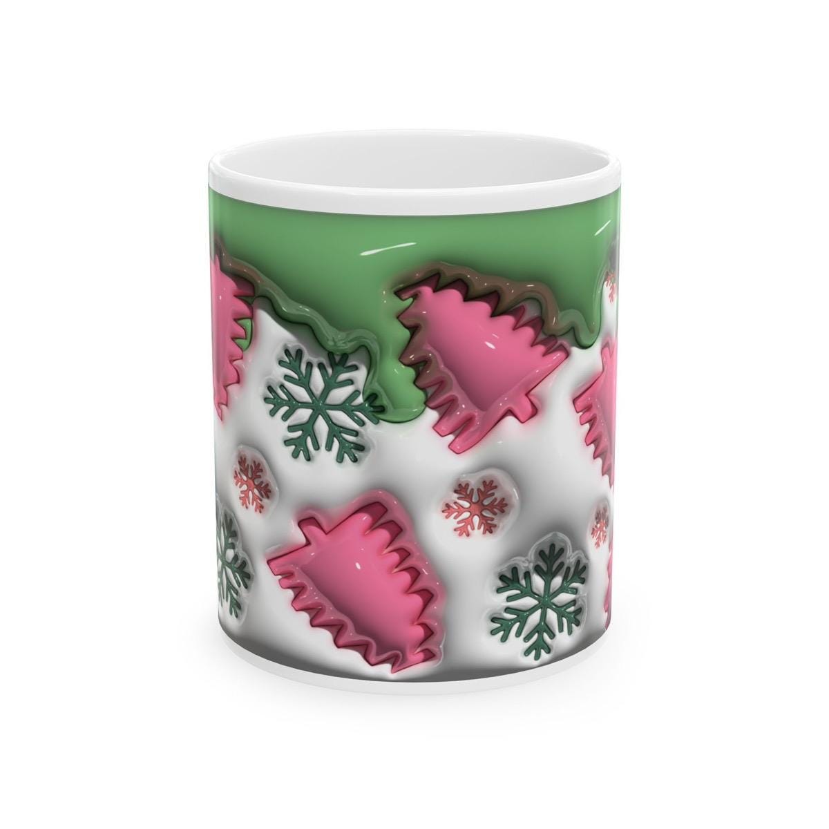 Whether you're enjoying your morning coffee or hot cocoa, this mug is sure to bring a smile to your face. The 3D style of the design adds a unique and eye-catching element to the mug, making it stand out from other mugs.