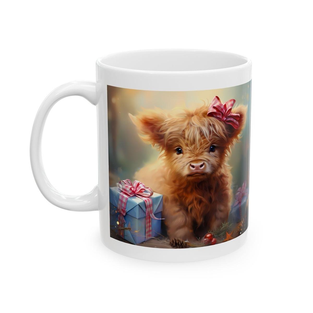 Overall, our cute baby Highland cow Christmas mug is a great way to show someone that you care about them and that you want to make their day special. It is a unique and adorable gift that is sure to bring a smile to their faces.