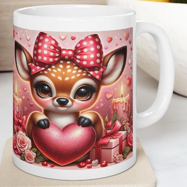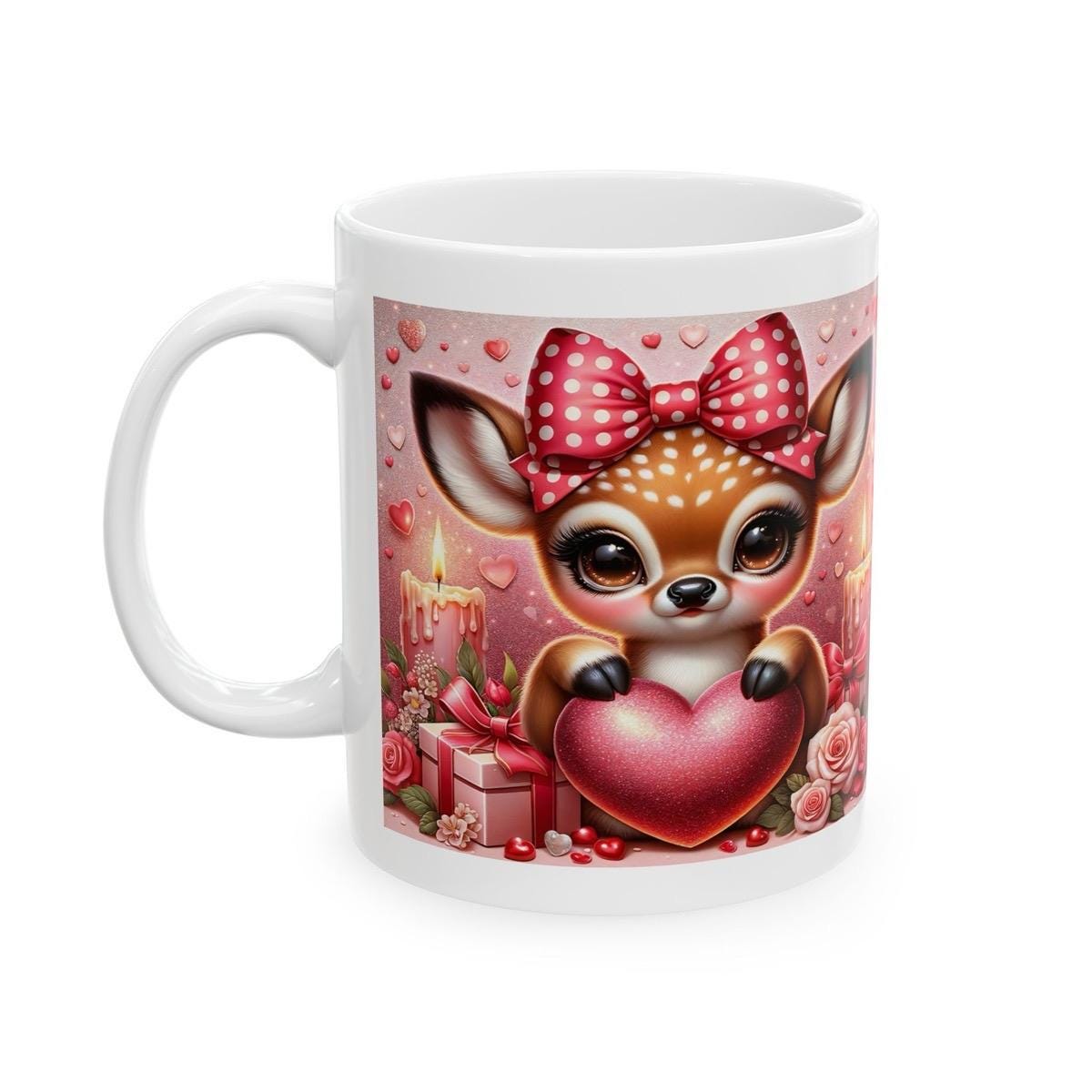 Cute deer valentines mug - heart design for drinks - tumblers, drinkware cup washable reusable ceramic reuse coffee girly valentine romanti