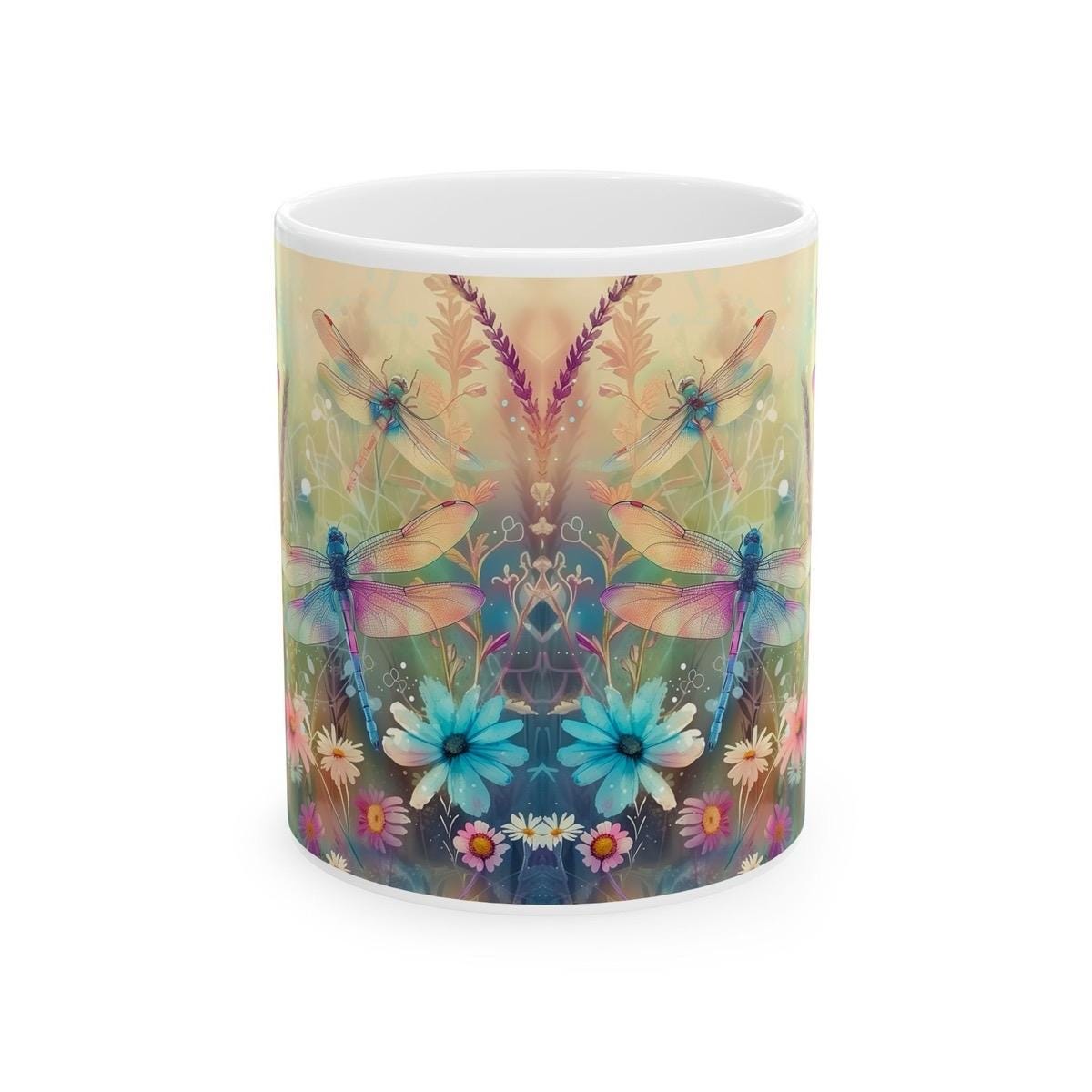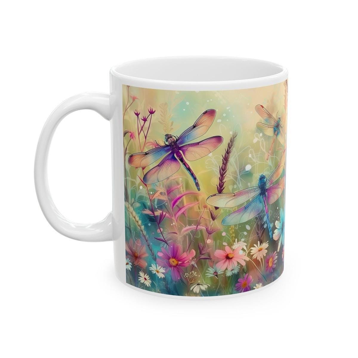 This cute dragonfly mug is the perfect addition to any nature lover's collection. The mug features a beautiful dragonfly design that is sure to catch the eye of anyone who sees it. The nature-inspired design adds a touch of whimsy to the mug, making it a fun and playful gift for any occasion.