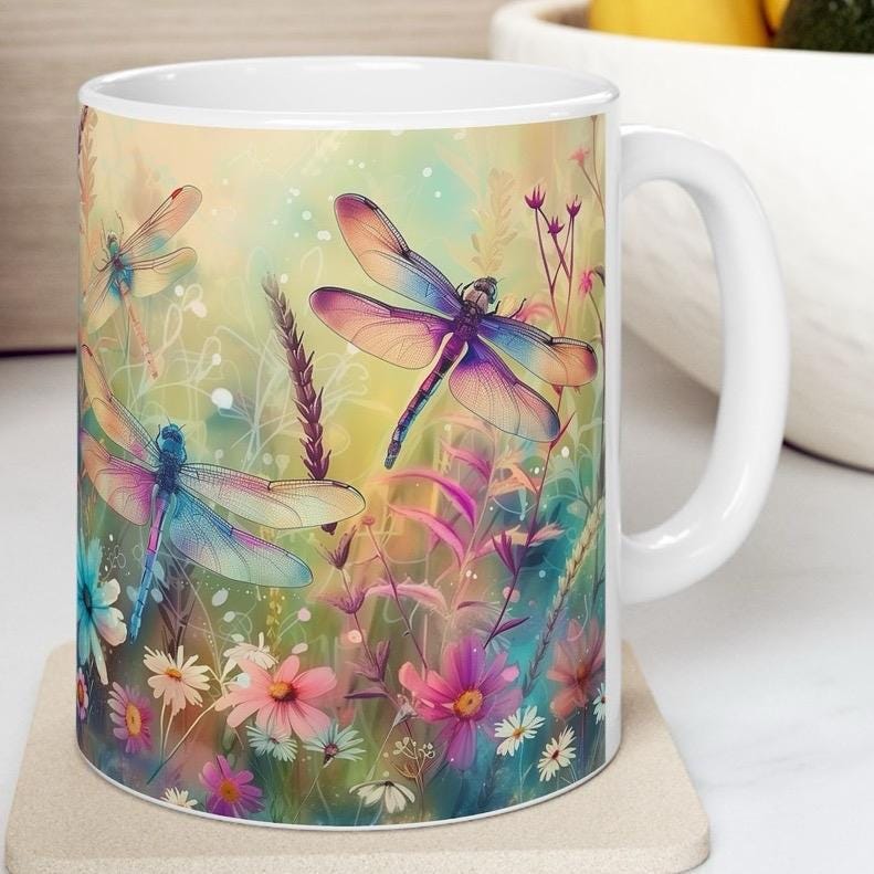 The dragonfly design is not only visually appealing but also has a deeper meaning. It represents transformation, growth, and adaptability, making it a meaningful gift for anyone who is going through a change in their life. The mug is also a great way to show someone that you care about their well-being and are thinking of them.