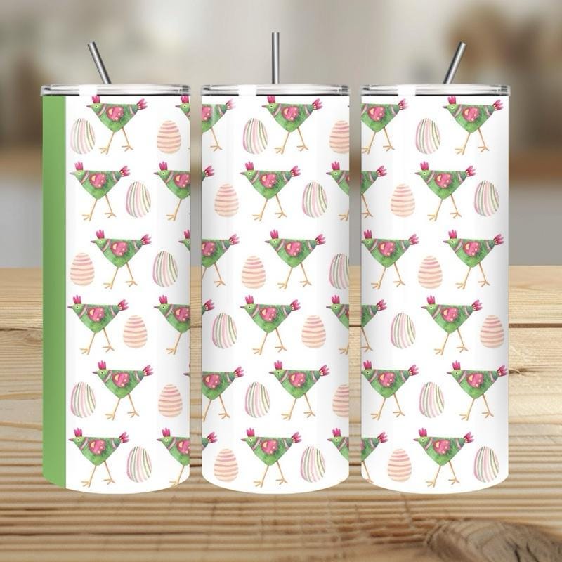 The Easter Chicken pattern on the tumbler is sure to make it stand out from other tumblers. The design is cute and unique, making it a great gift for anyone who loves cute and quirky things. The tumbler is also durable and can withstand daily use, making it a great choice for anyone who is always on the go.