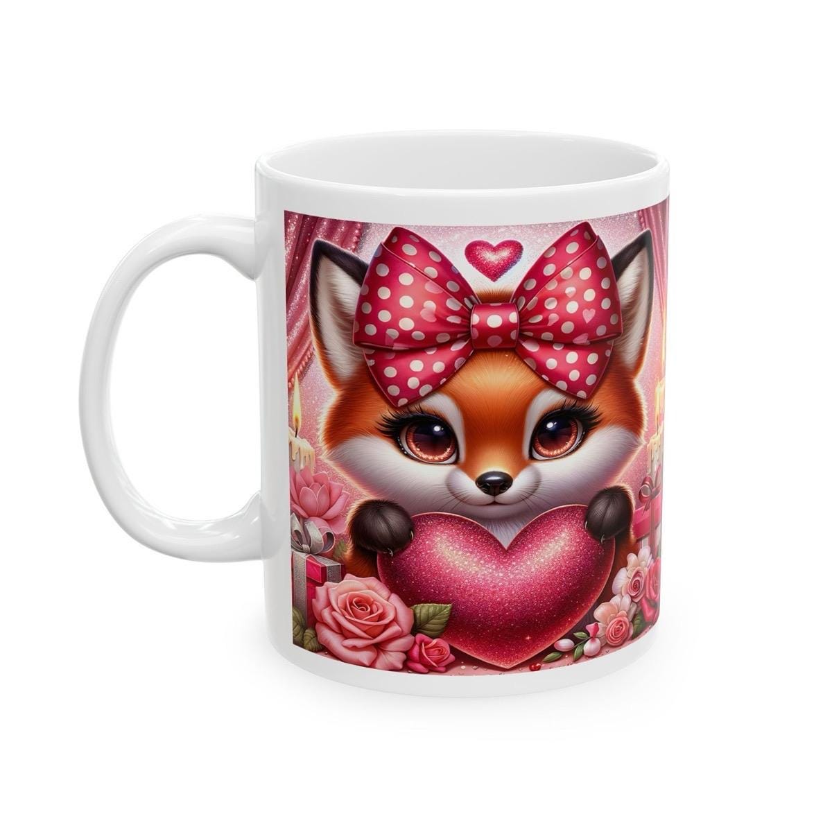 Cute fox valentine's day mug - heart design for drinks - drinkware, tumblers cup washable coffee ceramic bottles reusable reuse girly valent