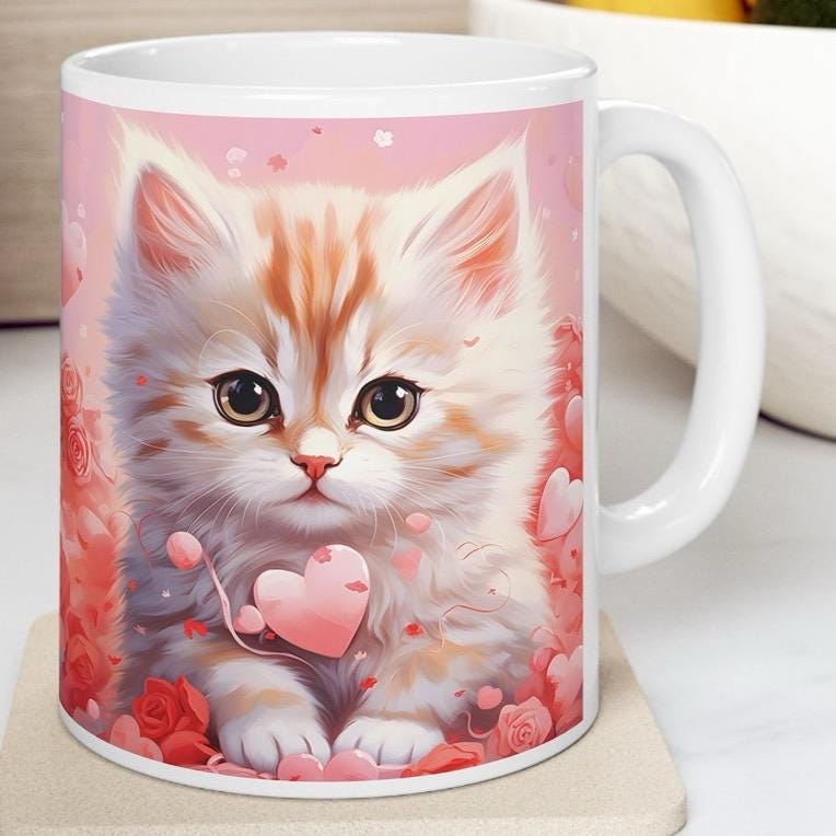 Cute kitten mug gifts for xmas and valentines - perfect for coffee and tea - kitty, drinkware tumblers cup washable ceramic reuse reusable g