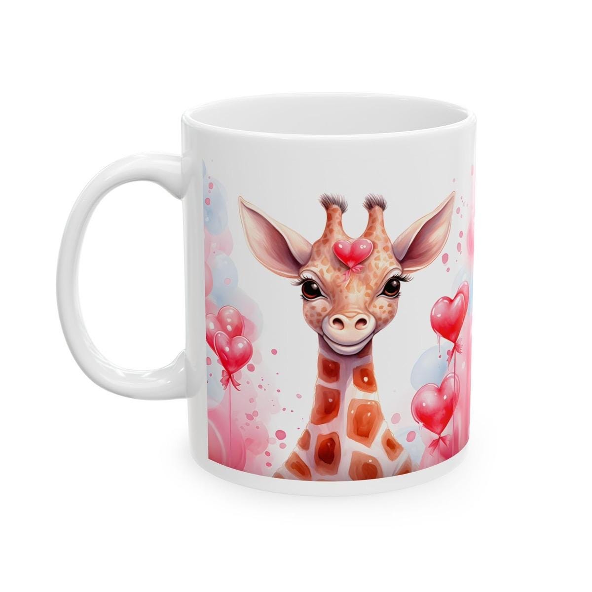 Cute love heart giraffe mug - perfect xmas stocking filler for boyfriend or girlfriend - washable, drinkware cup coffee tumbler reuse reusab
