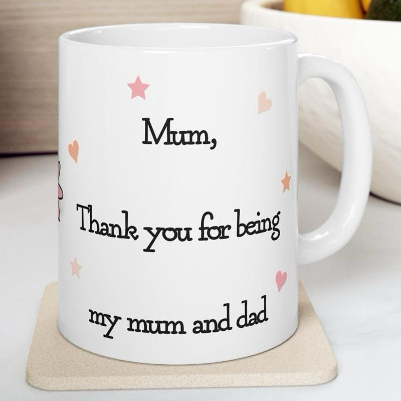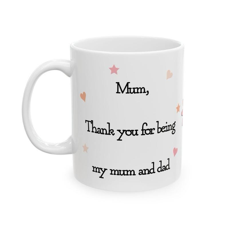 Cute mother’s day mug - thank you for being my mum and dad gift - perfect for coffee and tea - drinkware, tumblers cup bottles washable re