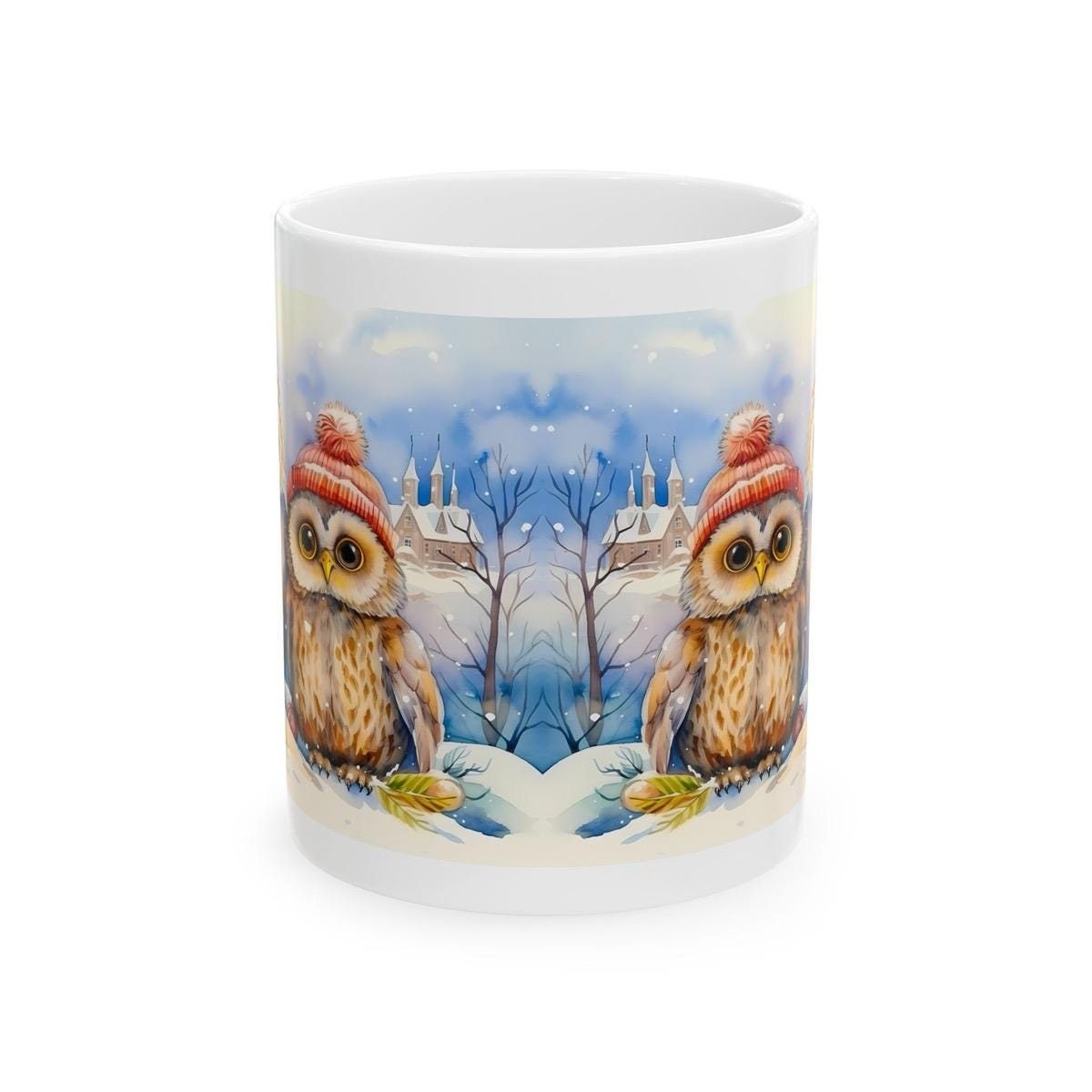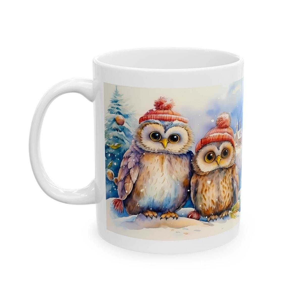This Christmas mug features cute owls that are sure to bring a smile to your face every time you use it. The design is perfect for those who love owls and want to add a touch of cuteness to their holiday season.