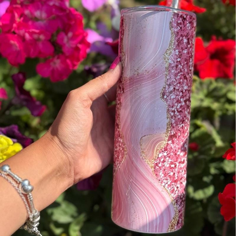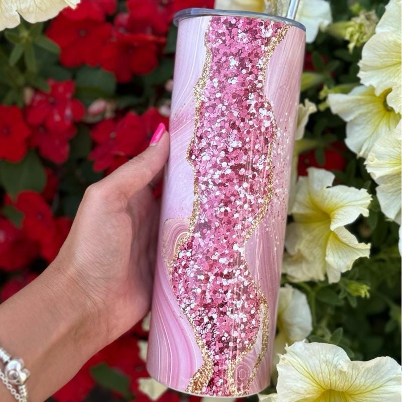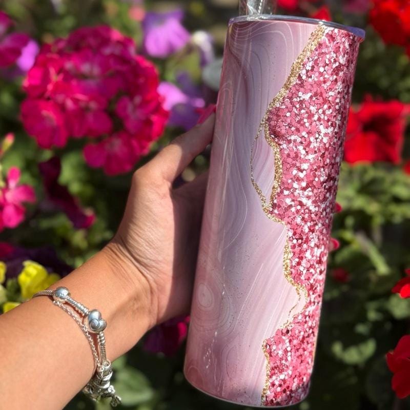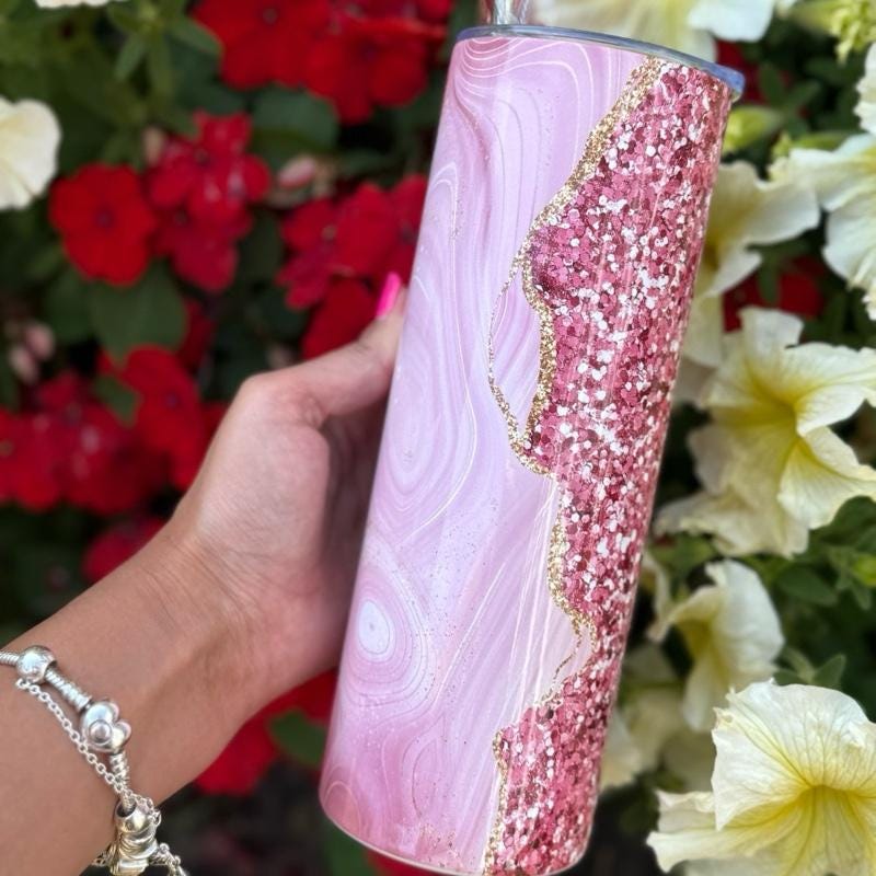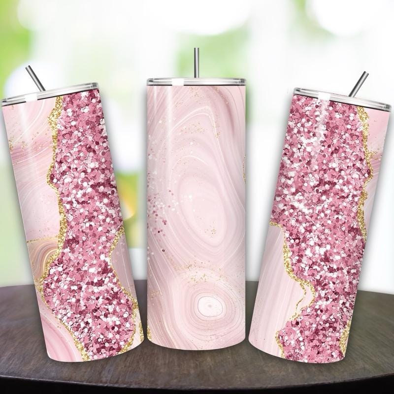 Cute pink marble 20oz glitter girly tumbler style - perfect for any occasion drinkware flasks mug bottles water bottles bottled stylish beve