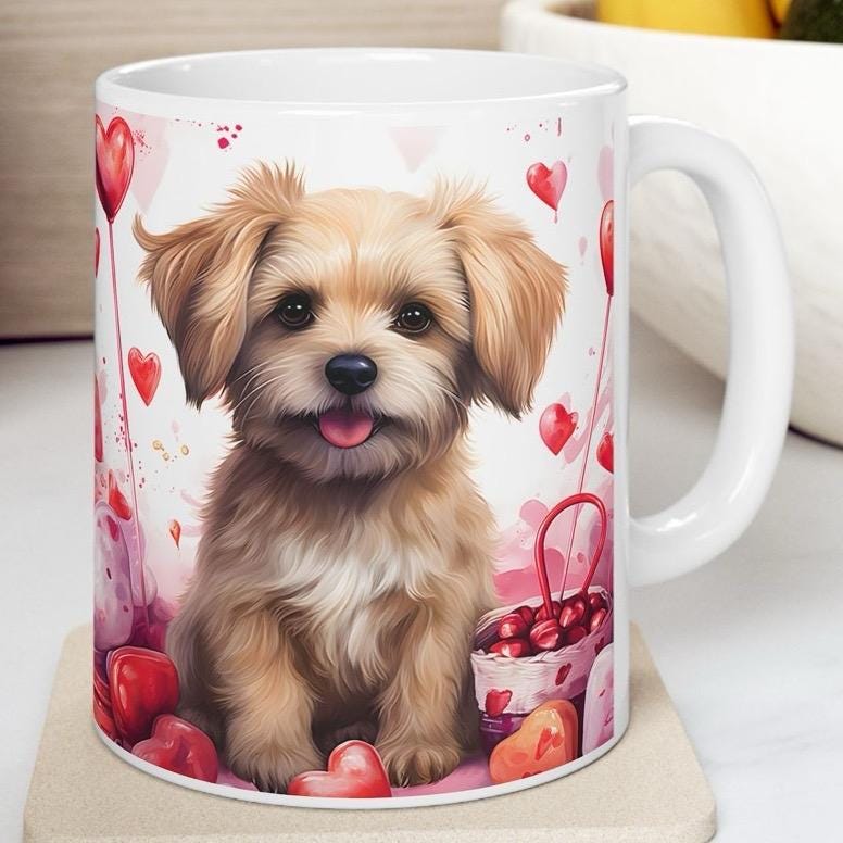 Cute puppy dog mug - perfect for your morning drinks - cup, drinkware tumblers washable ceramic coffee reusable reuse customized girly heart
