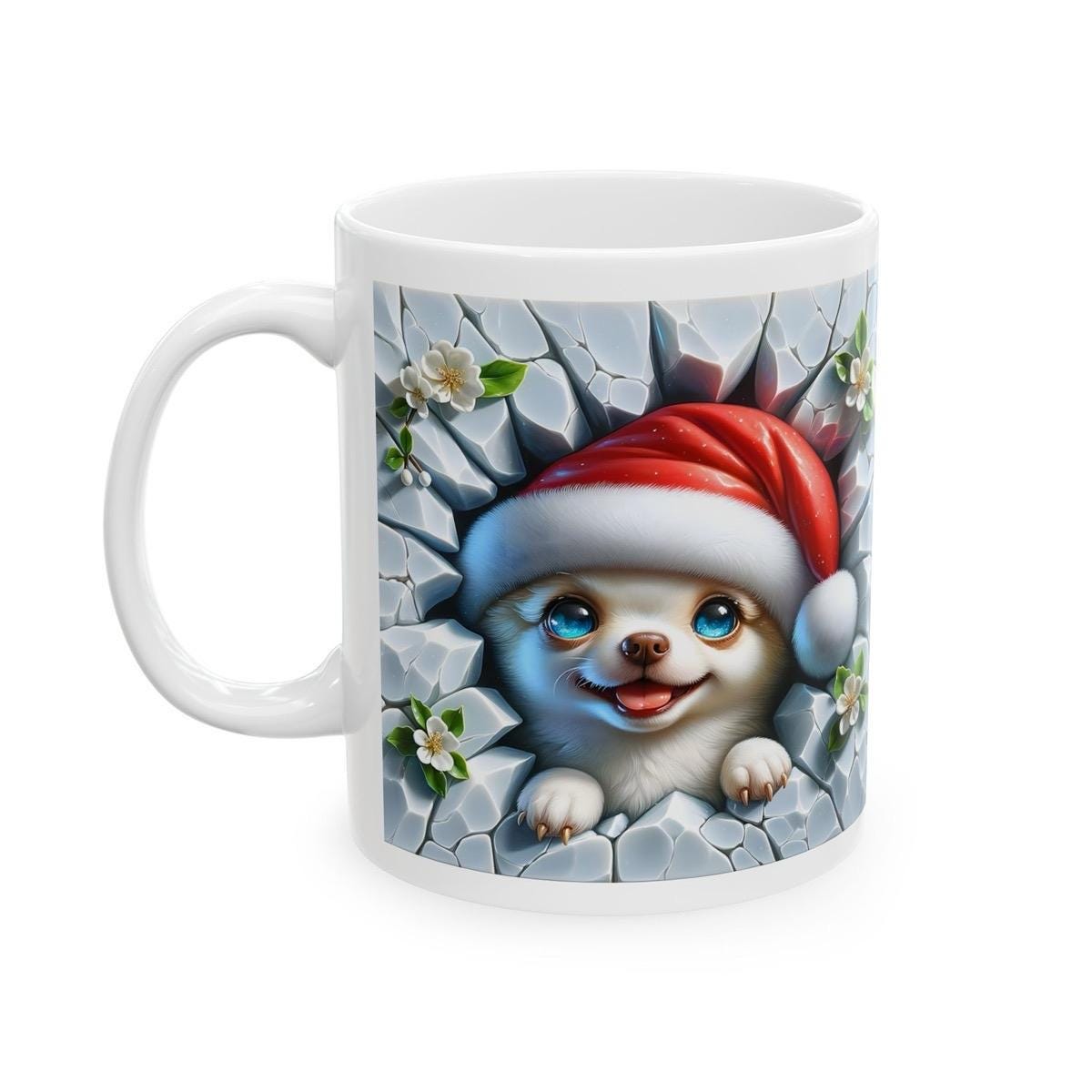 Cute puppy dog mug - xmas style gift - perfect for coffee and tea - cup, drinkware tumblers washable ceramic reusable reuse bottles mugs