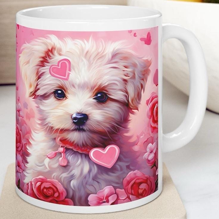 This cute puppy dog Valentine's mug is the perfect addition to your drinkware collection. The mug is designed to be used for drinking, making it a practical choice for any occasion. The cute puppy dog design adds a touch of fun and playfulness to your drinkware collection.