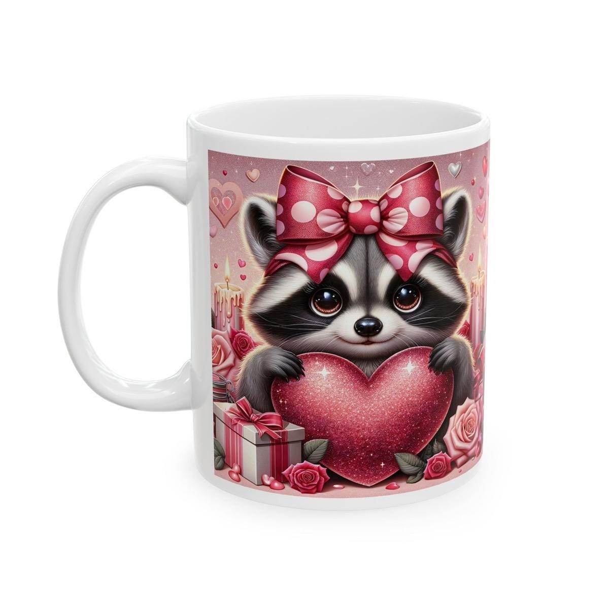 Cute raccoon valentine's day mug - perfect gift for any occasion - drinkware, tumblers cup heart design reusable washable coffee reuse ceram
