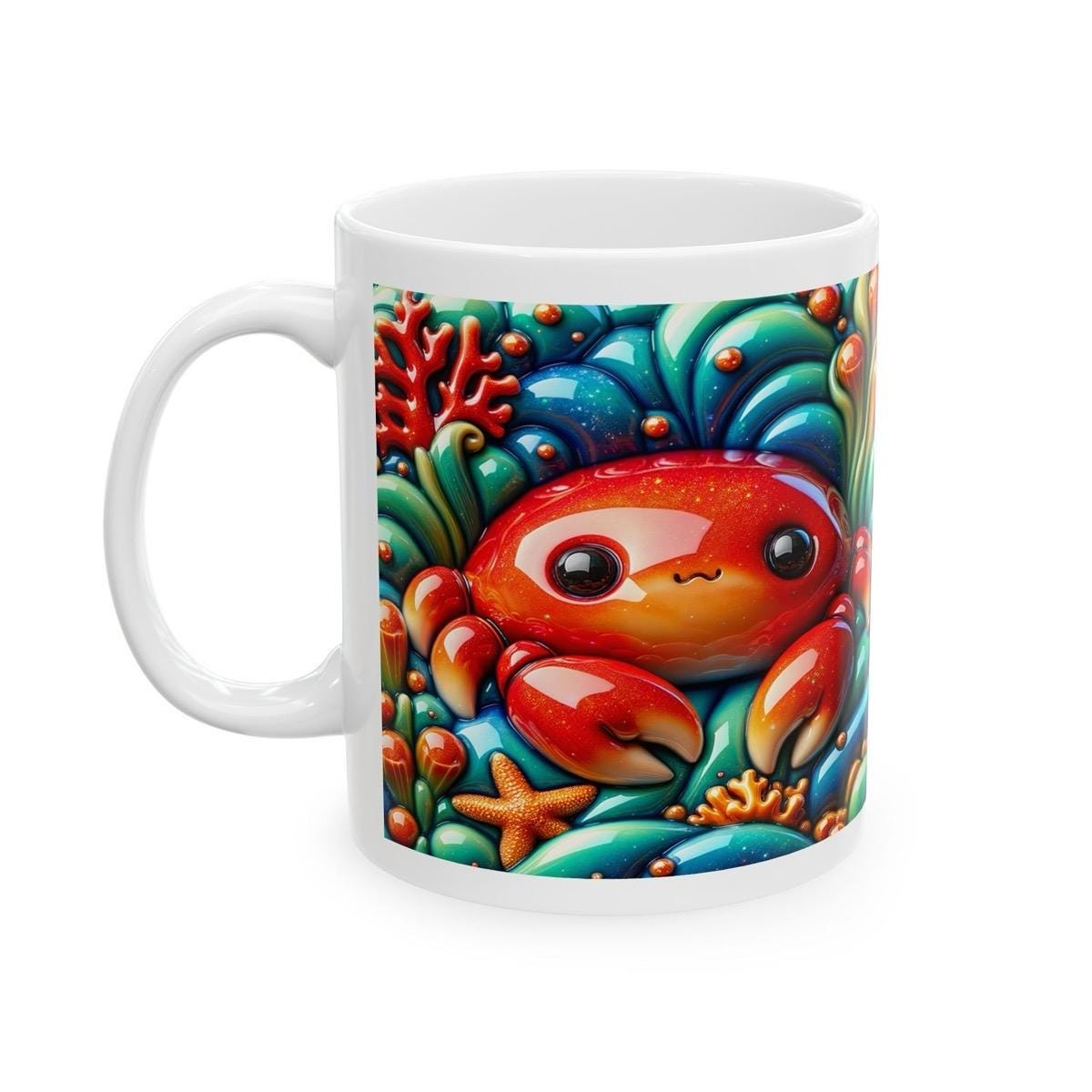 This 3D mug is a fun and unique way to enjoy your favorite hot beverages. The mug features a cute red crab design that is sure to bring a smile to your face every time you use it. The 3D design adds depth and dimension to the mug, making it stand out from other mugs.