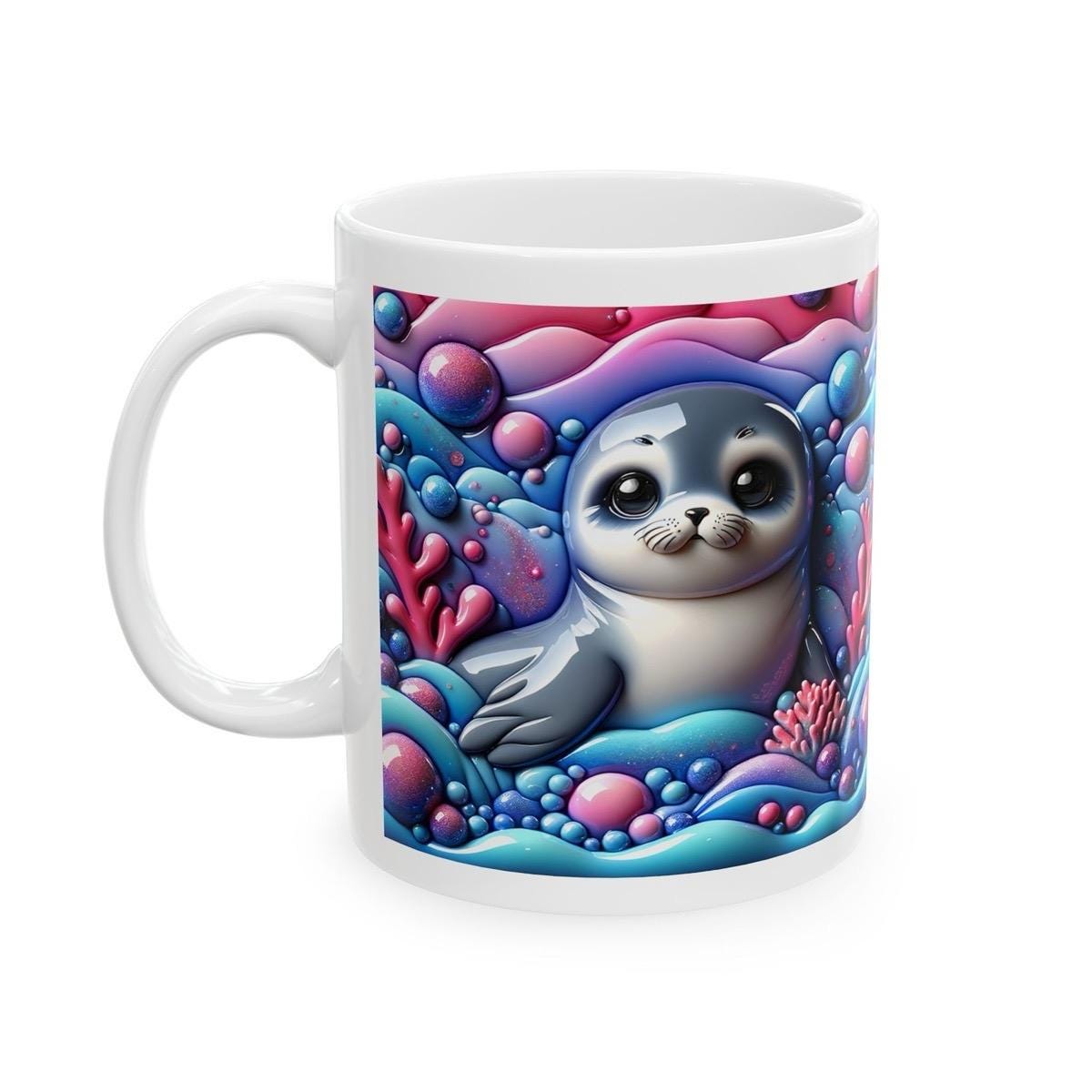 The advantage of the 3D design is that it adds depth and dimension to the mug, making it more visually appealing. The design is intricate and detailed, with a realistic baby seal that is sure to impress. The mug is also durable and long-lasting, thanks to the high-quality materials used in its construction.